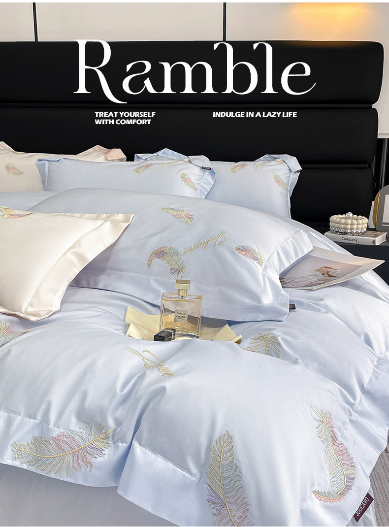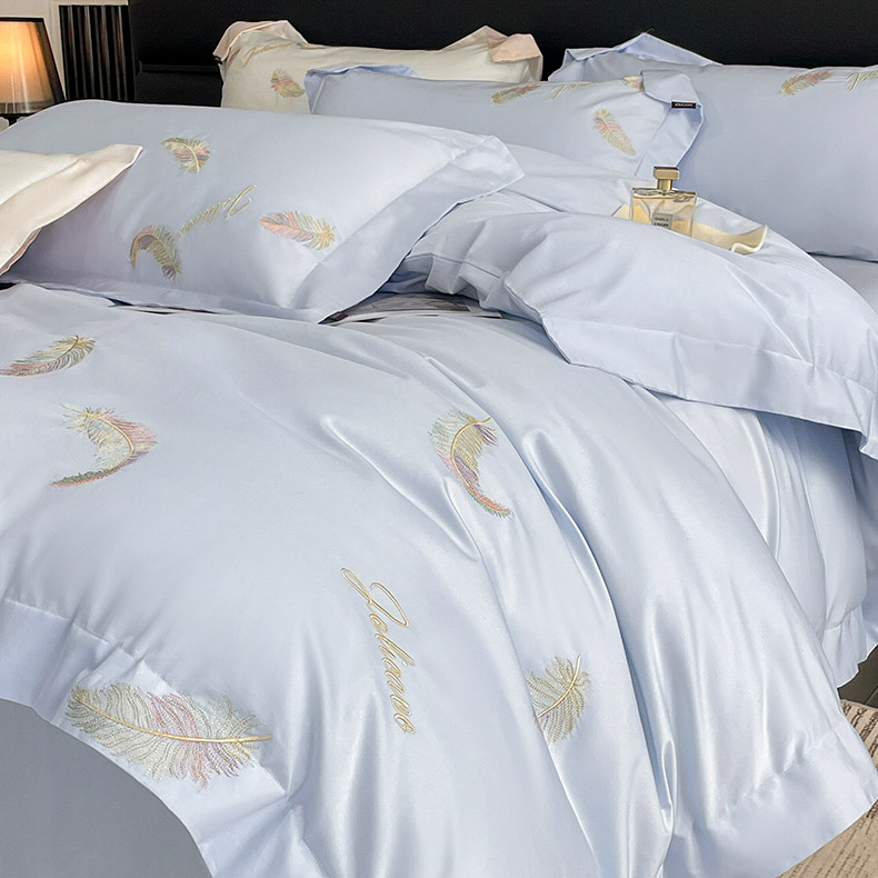 商品名称:轻奢风新品贡缎长绒棉四件套纯棉全棉重工刺绣床单被套高端床上用品 芊羽梦-慕蓝