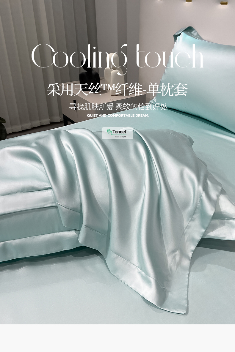 • 91家纺网 家纺一手货源 找家纺 (买家秀 爆款花型不断货)A类母婴级兰精天丝TM纯色枕套兰精天丝枕头套一对装天丝单枕套 单枕套-碧海绿