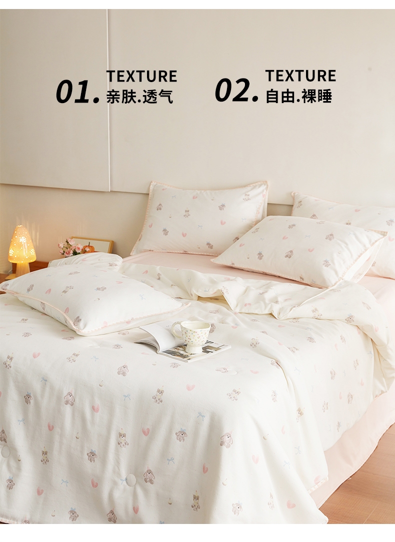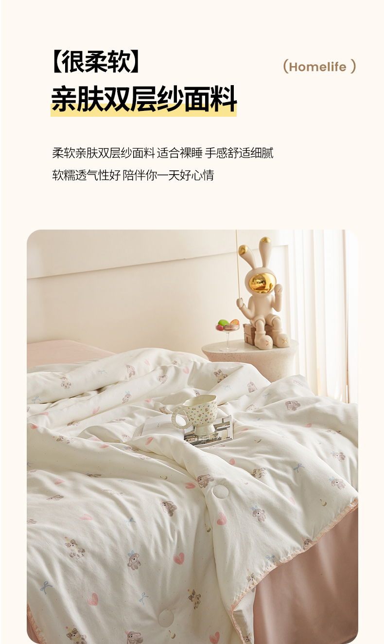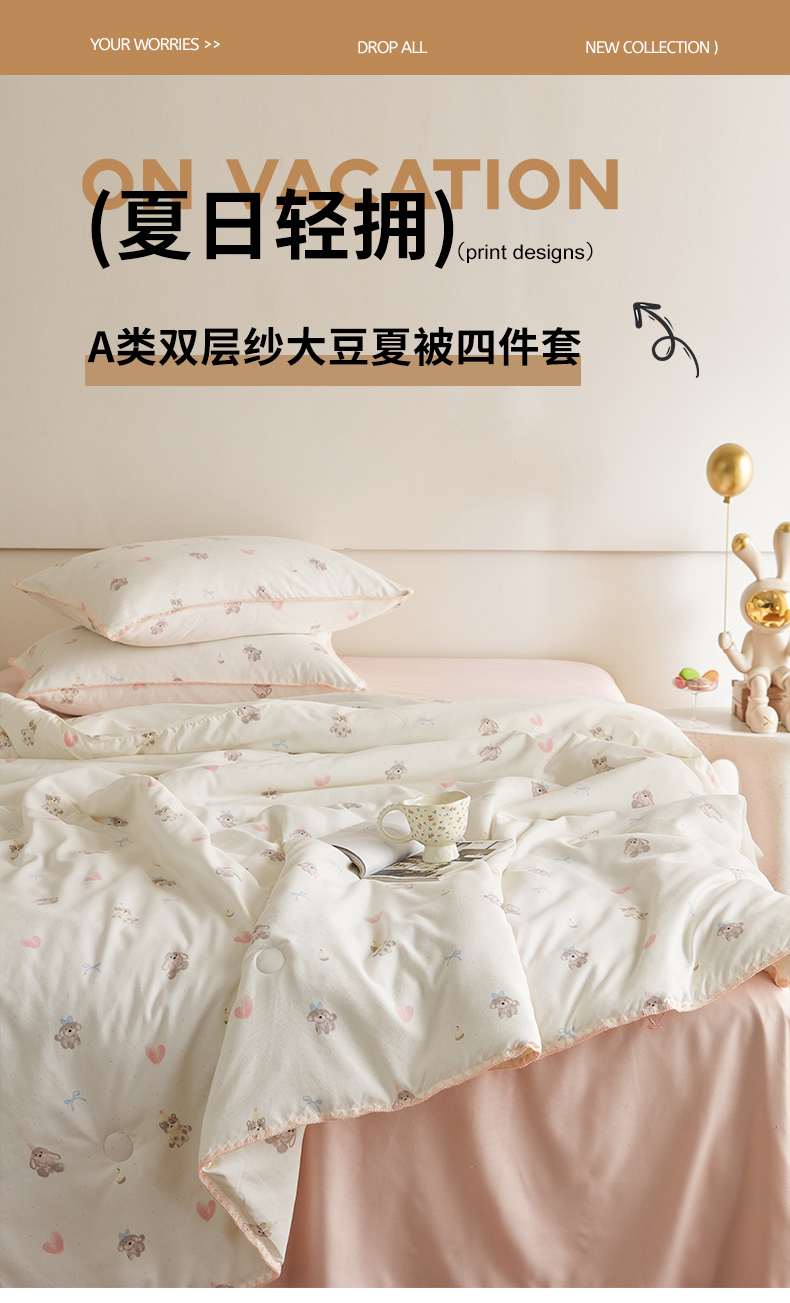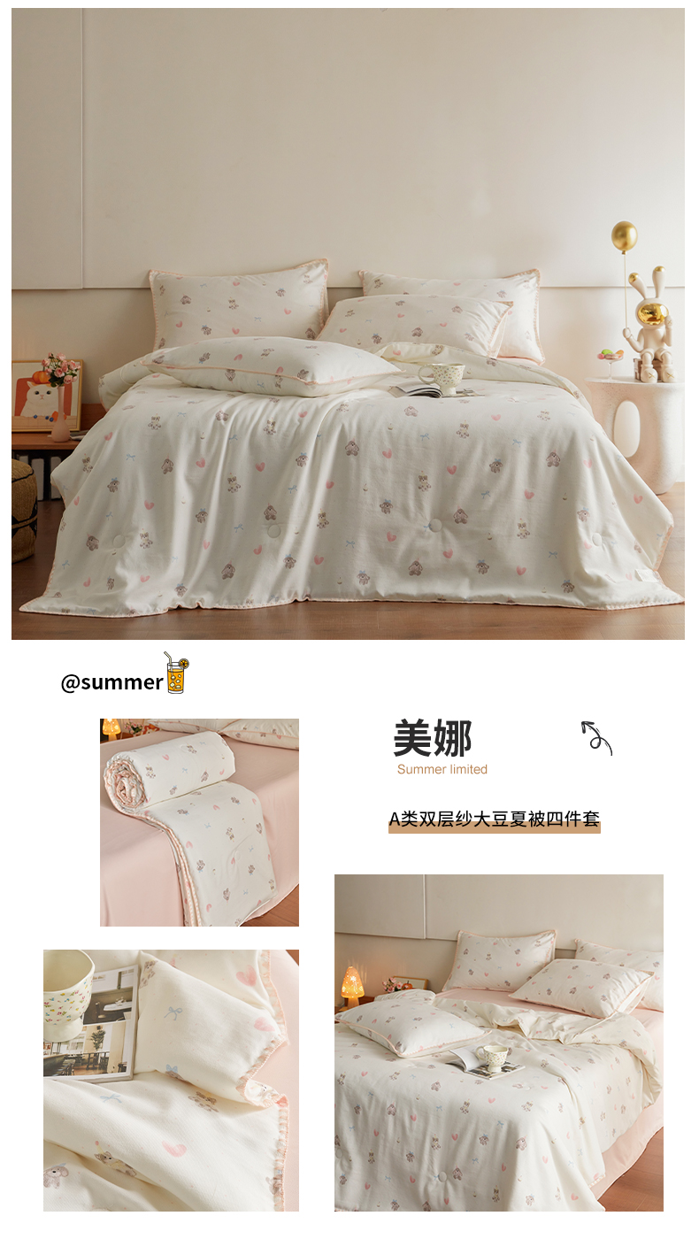 当前位置: 91家纺网 > 商品网购 > 床品套件 > 四件套 > 夏被四件套 > 暖阳 2025年新款大豆双层纱夏被四件套 美娜