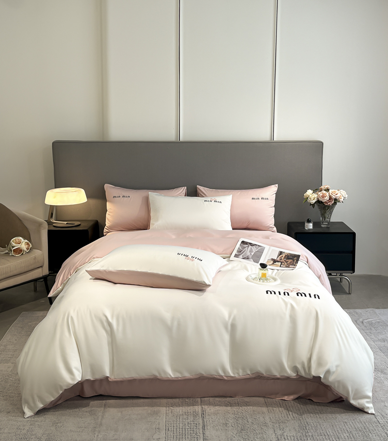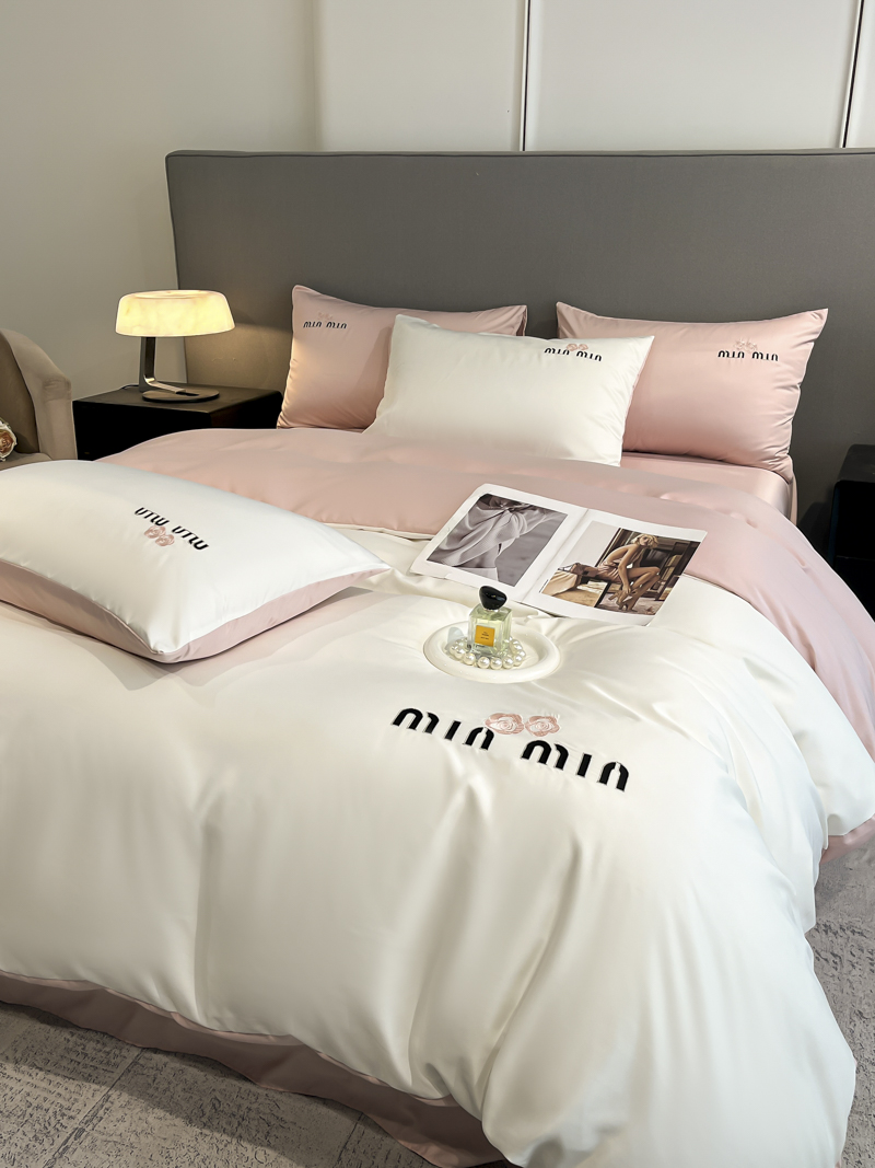 大麦乐田 2025新品珍珠棉达芙刺绣四件套 达芙奶昔白+浪漫粉
