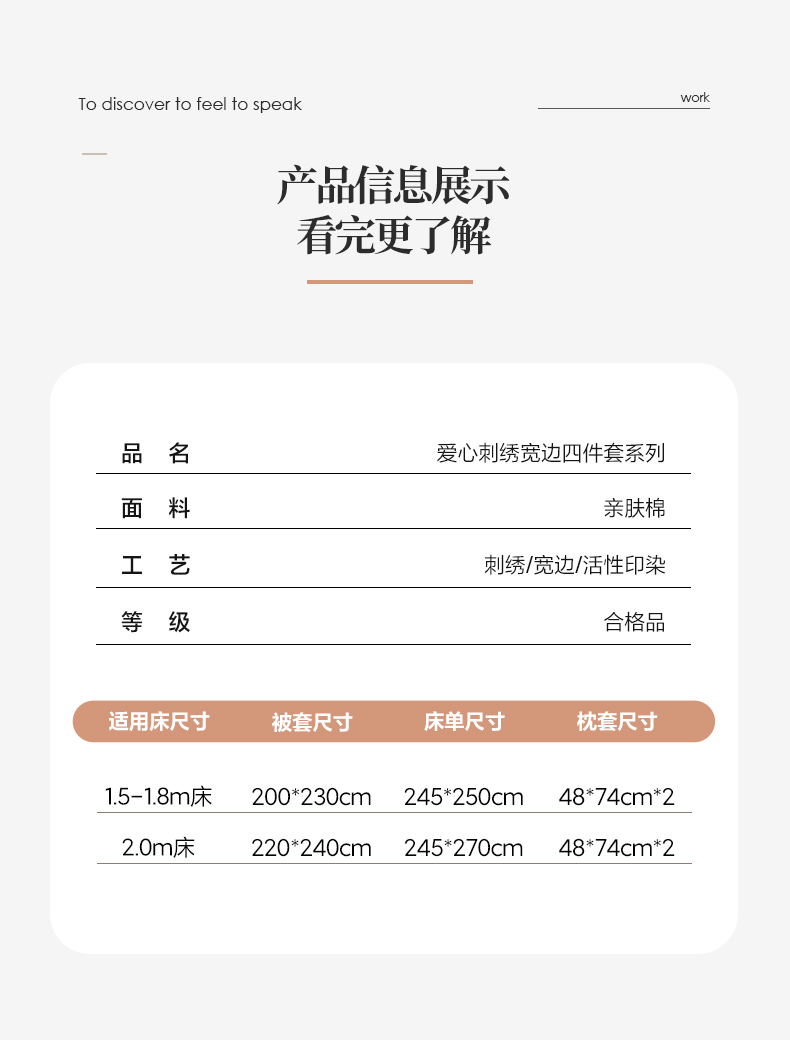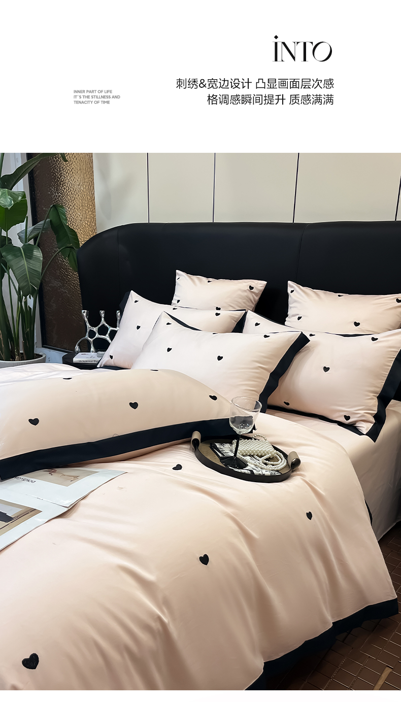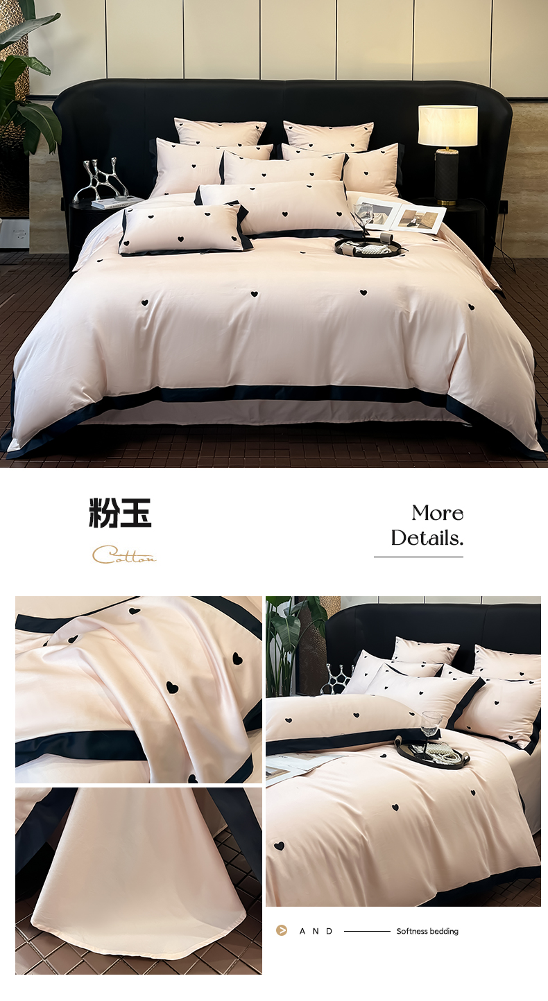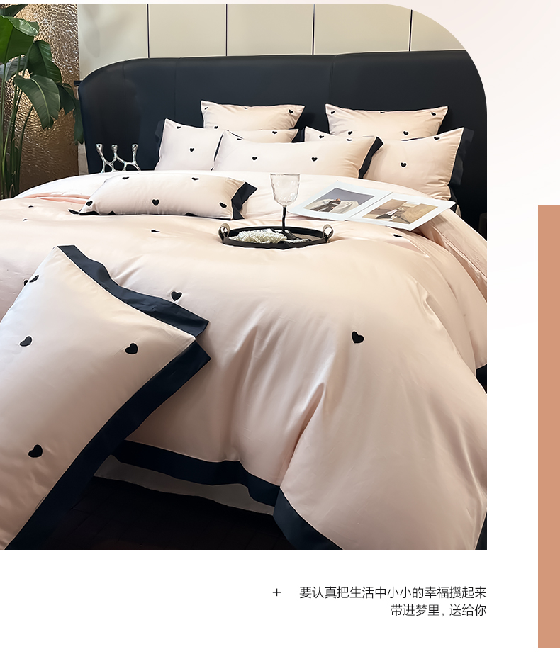 商品名称:博纳家纺 2025新款亲肤棉绣花爱心刺绣宽边四件套—甜蜜爱心 粉玉
