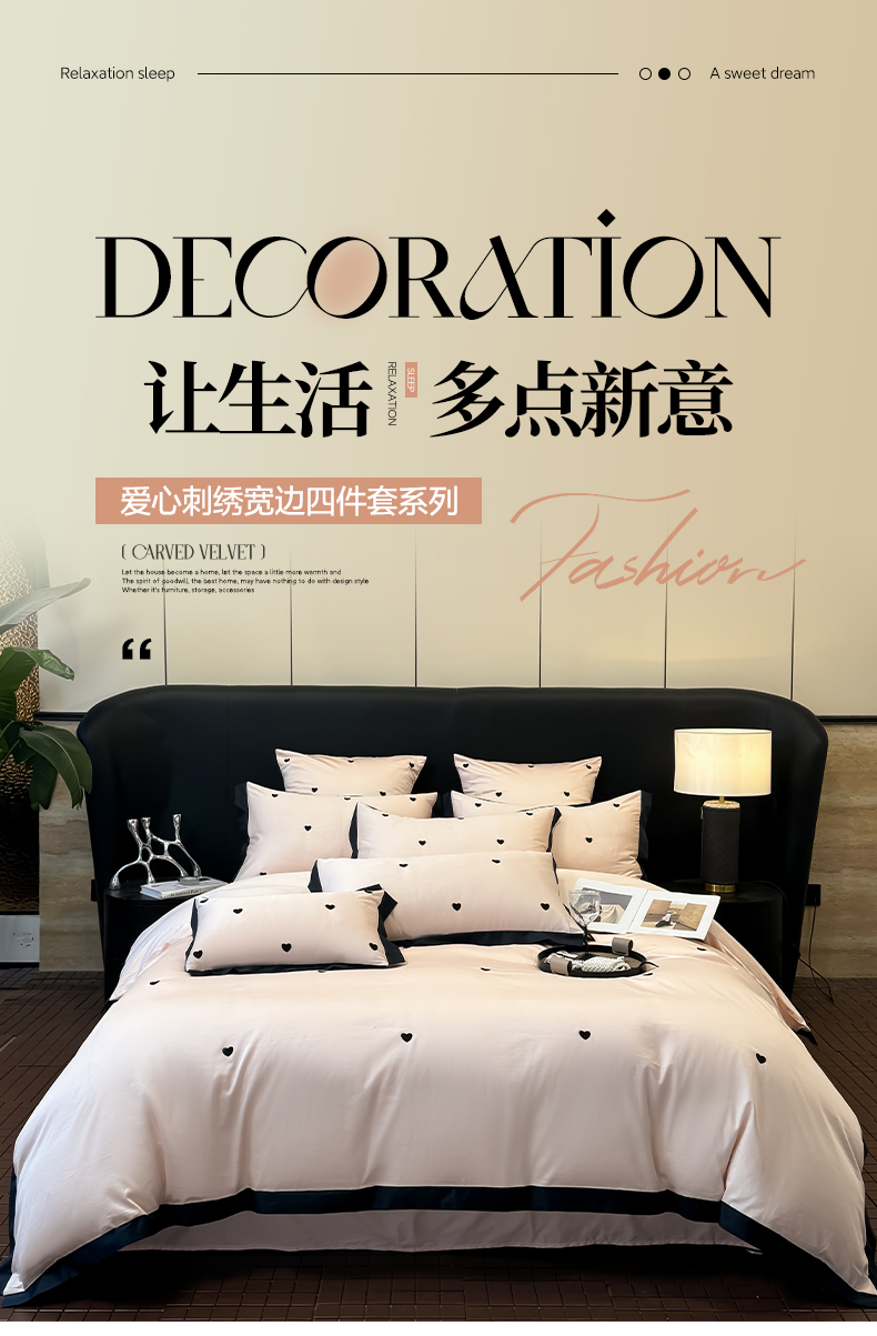 博纳家纺 2025新款亲肤棉绣花爱心刺绣宽边四件套—甜蜜爱心 粉玉