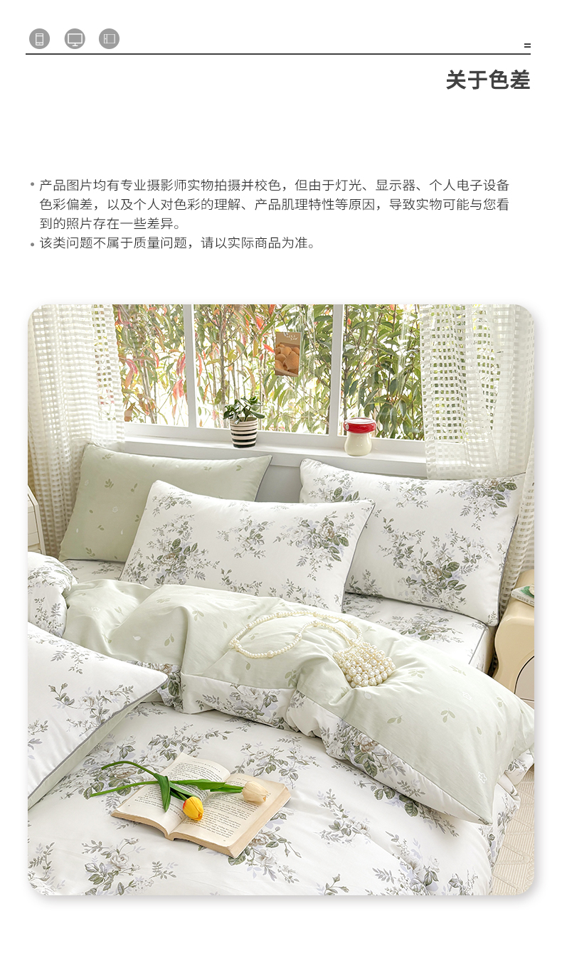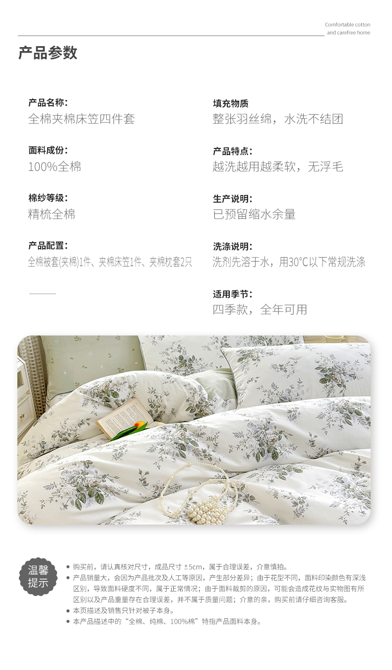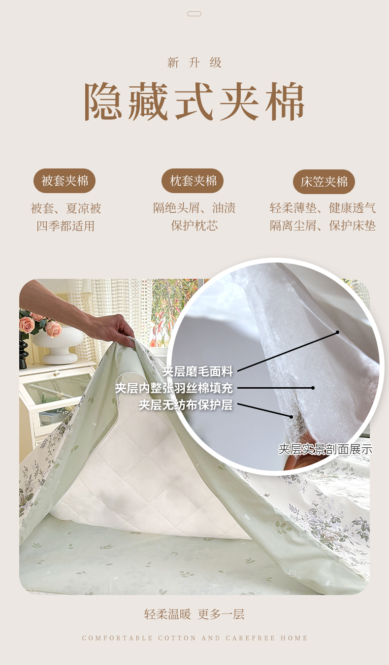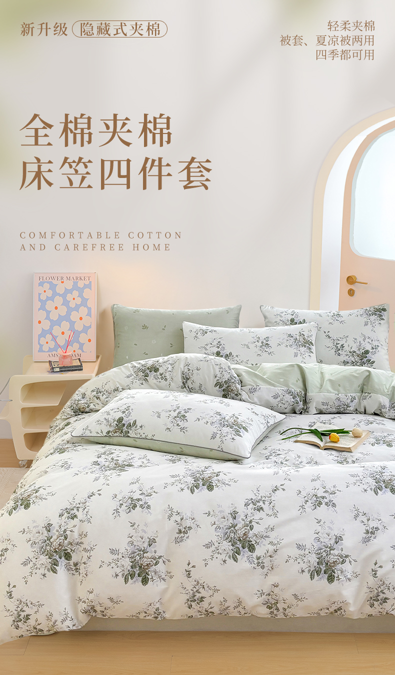 当前位置: 91家纺网 > 商品网购 > 床品套件 > 四件套 > 全棉普通四件套 > 元元被芯 2025新款40支13372全棉印花全棉夹棉床笠四件套 若萱