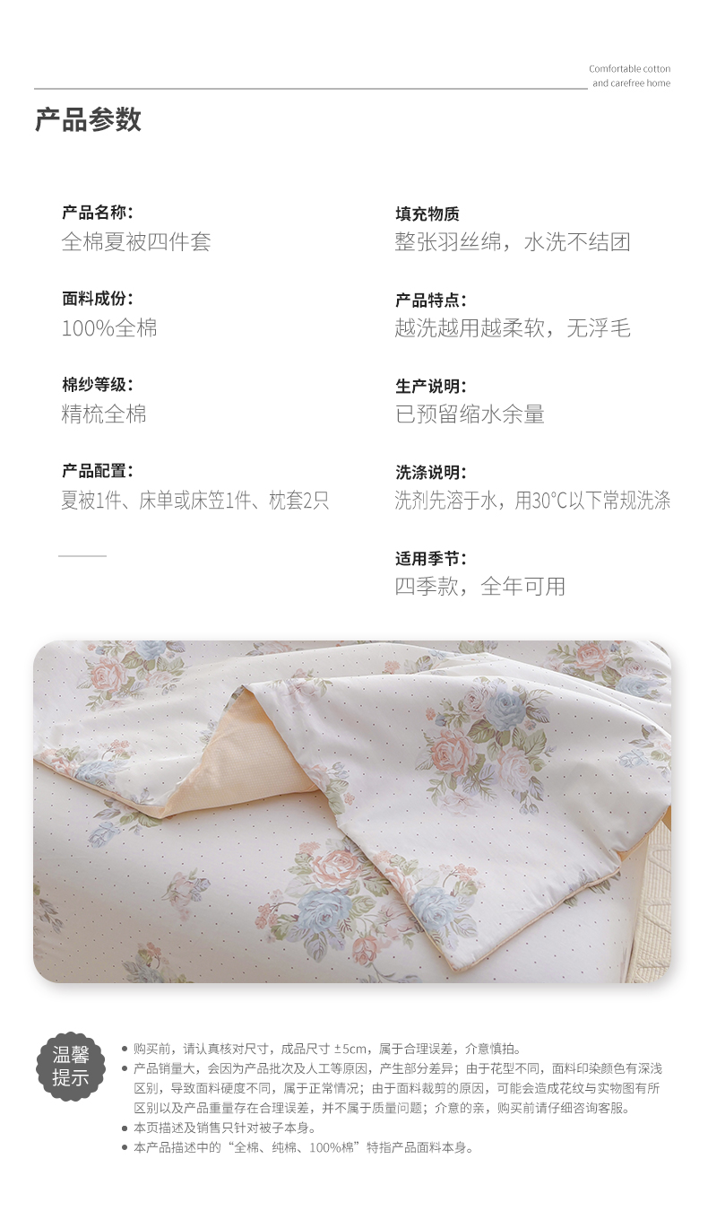 当前位置: 91家纺网 > 商品网购 > 被子 > 夏被 > 元元被芯 2025新款40支13372全棉印花夏被四件套 花舞