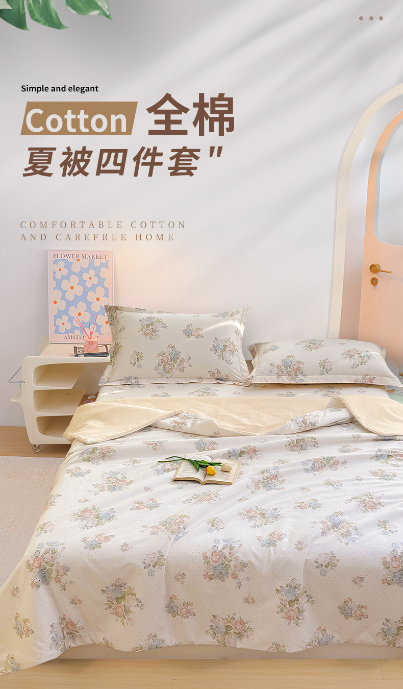 • 91家纺网 家纺一手货源 找家纺 元元被芯 2025新款40支13372全棉印花夏被四件套 花舞