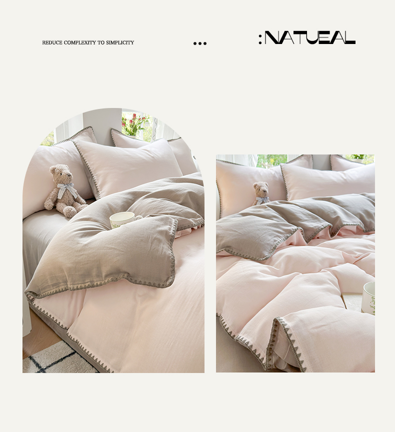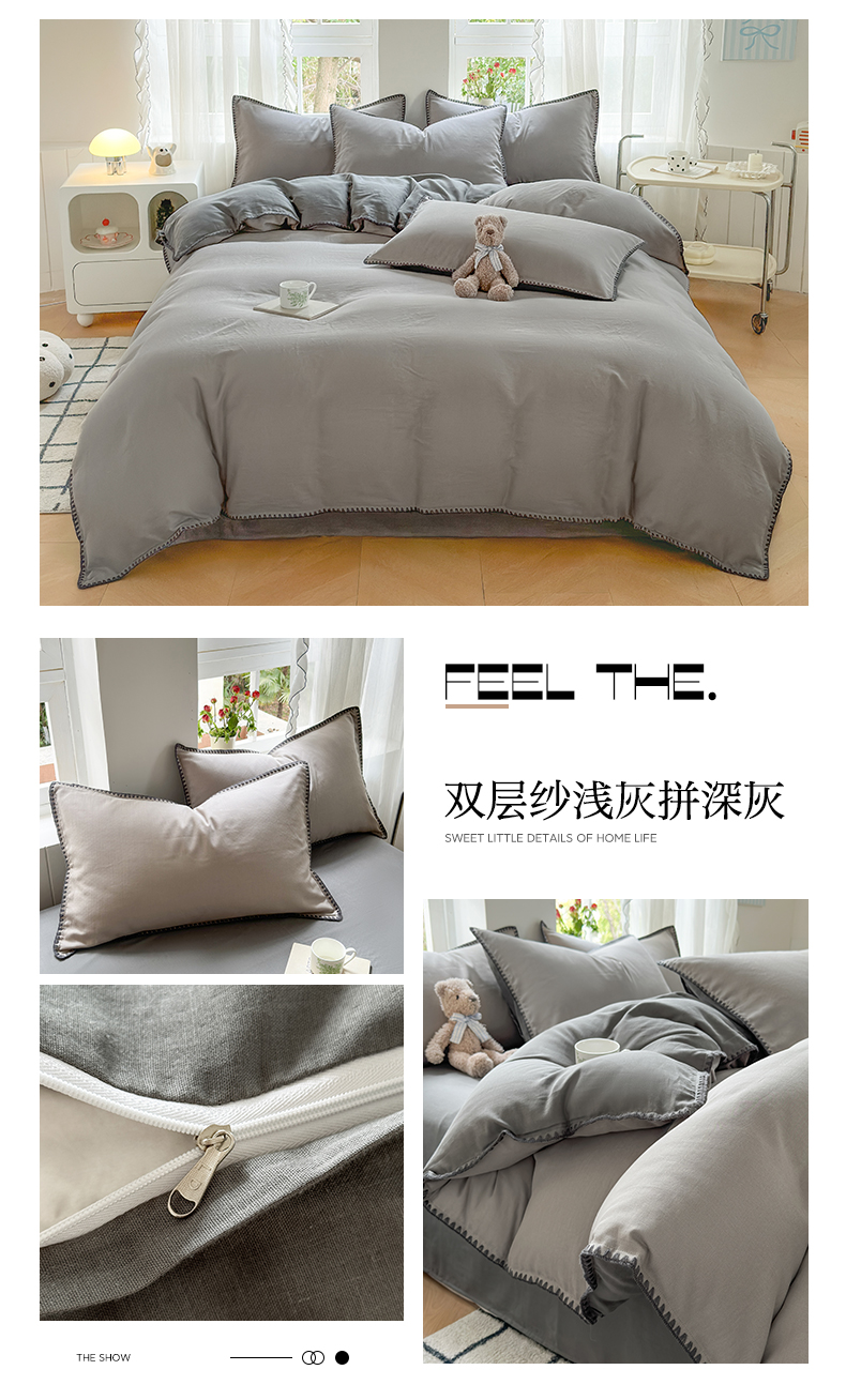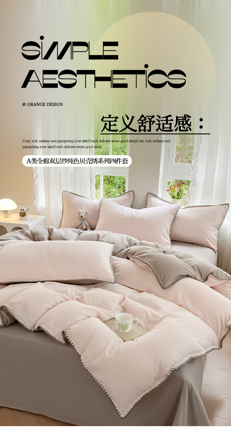 (总)莱登卡奴 2025新款A类全棉双层纱纯色贝壳绣系列四件套