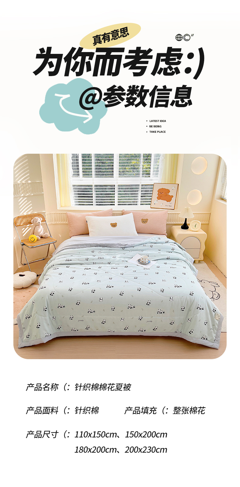 商品名称:鑫棉坊2025新款A类针织棉纱棉花夏凉被 可爱熊猫