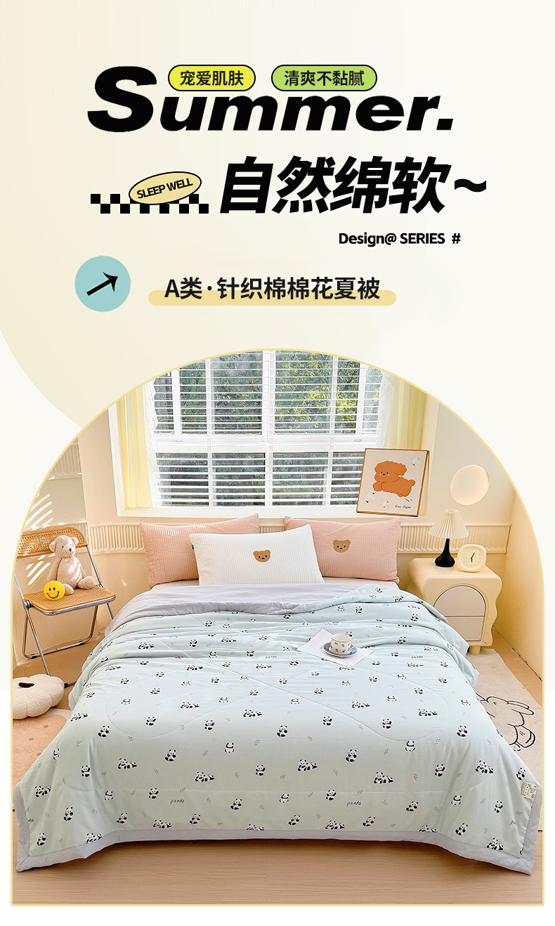 鑫棉坊2025新款A类针织棉纱棉花夏凉被 可爱熊猫