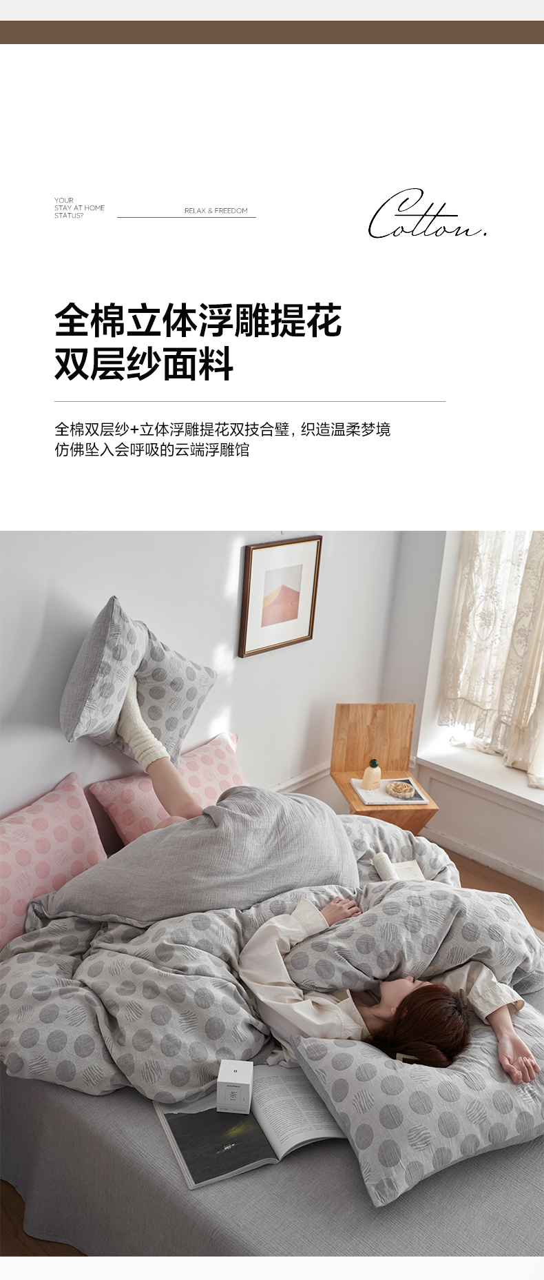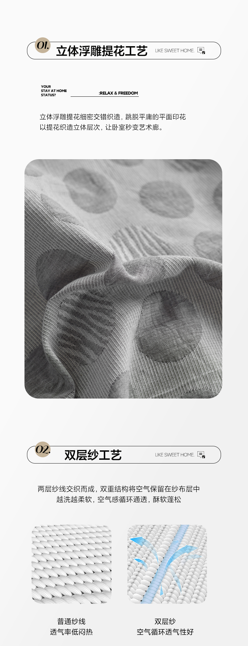 当前位置: 91家纺网 > 商品网购 > 床品套件 > 四件套 > 双层纱四件套 > 艾咪 全棉立体浮雕提花双层纱四件套 波妞-灰