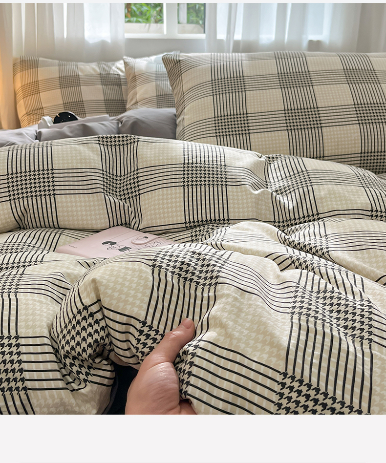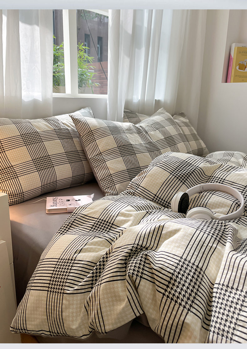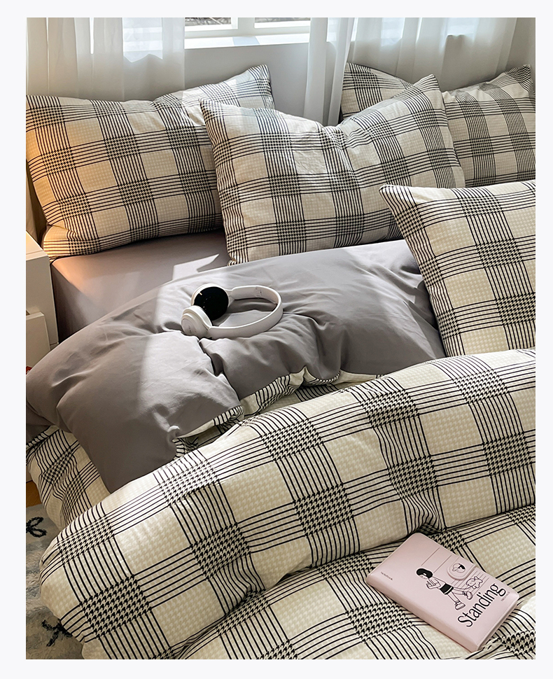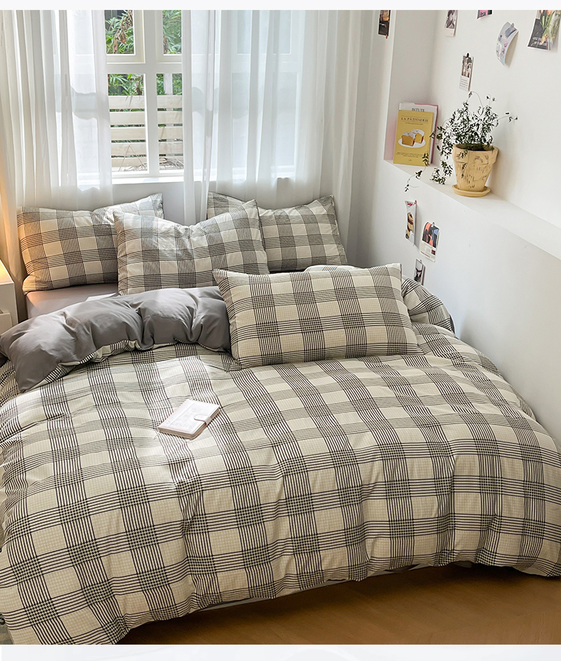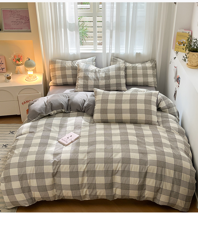 当前位置: 91家纺网 > 商品网购 > 床品套件 > 四件套 > 水洗棉四件套 > 盛秋家纺 2025新款亲肤格子水洗棉条纹格子四件套【简约风】罗格+中灰