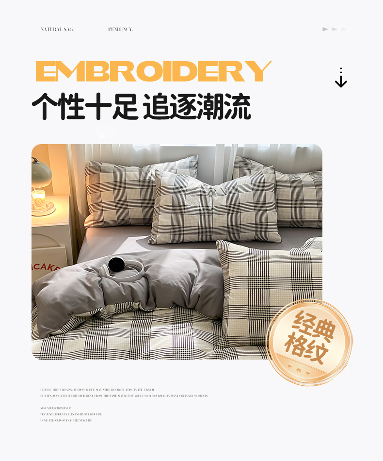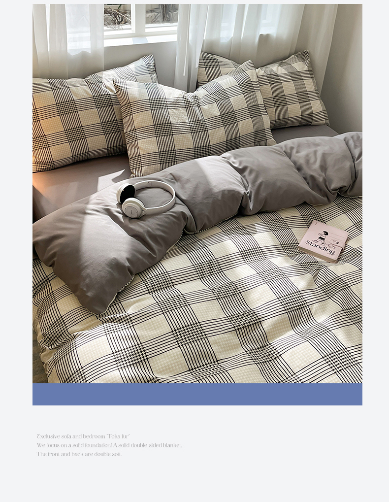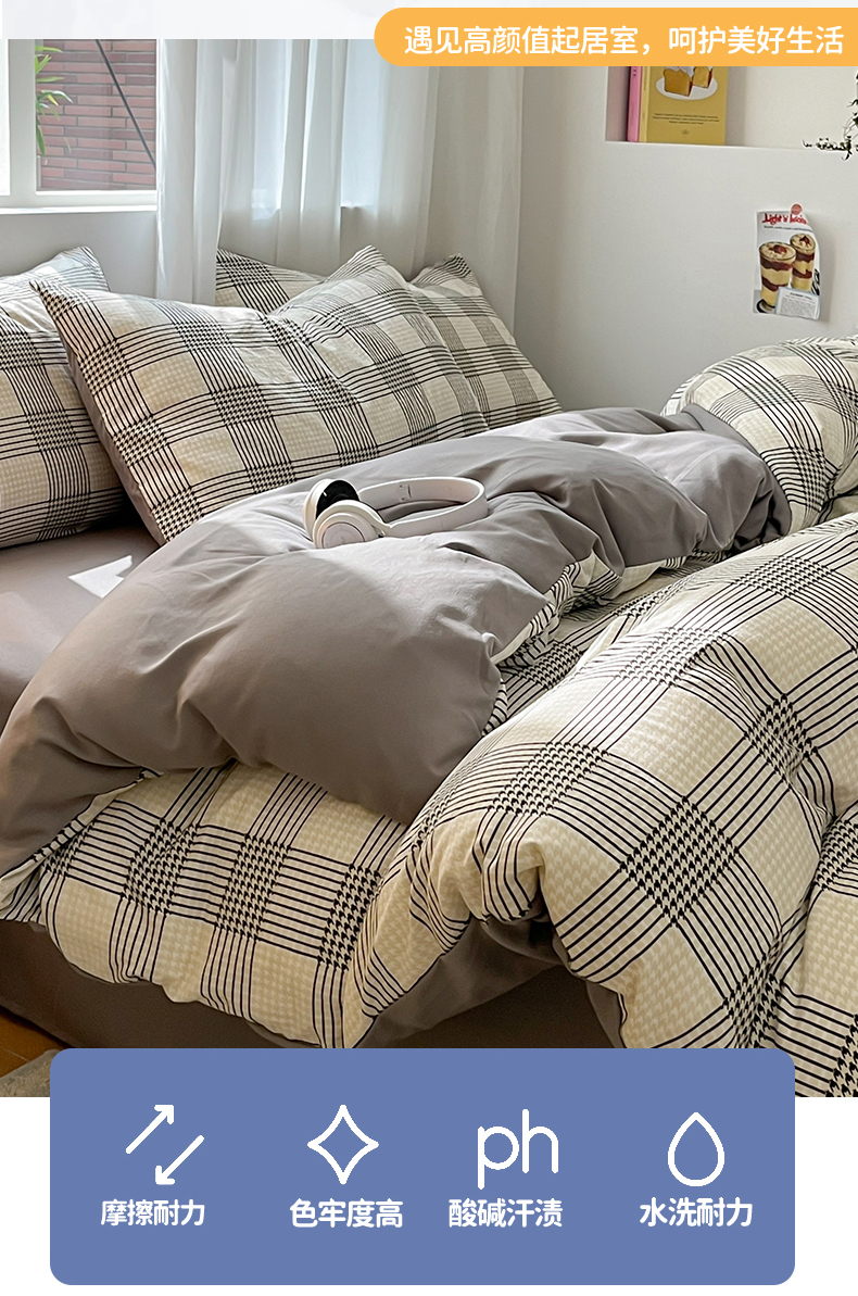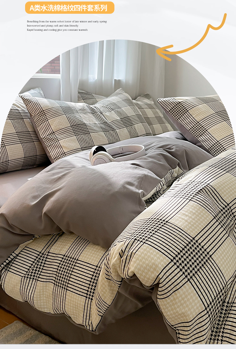 当前位置: 91家纺网 > 商品网购 > 床品套件 > 四件套 > 水洗棉四件套 > 盛秋家纺 2025新款亲肤格子水洗棉条纹格子四件套【简约风】罗格+中灰