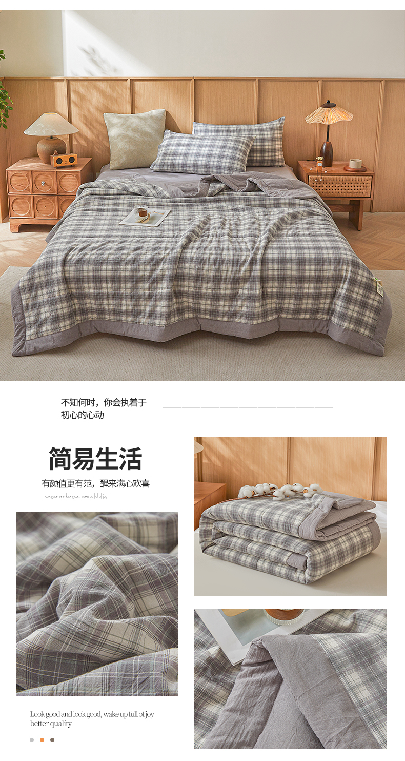 (总)猎鹿人家纺 2026新款纯色全棉水洗棉棉花夏被空调被,复古豆沙,莲藕粉,时尚灰,天青蓝,迷雾黑,月光白,组合