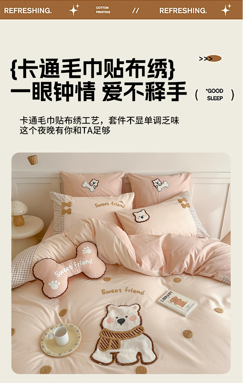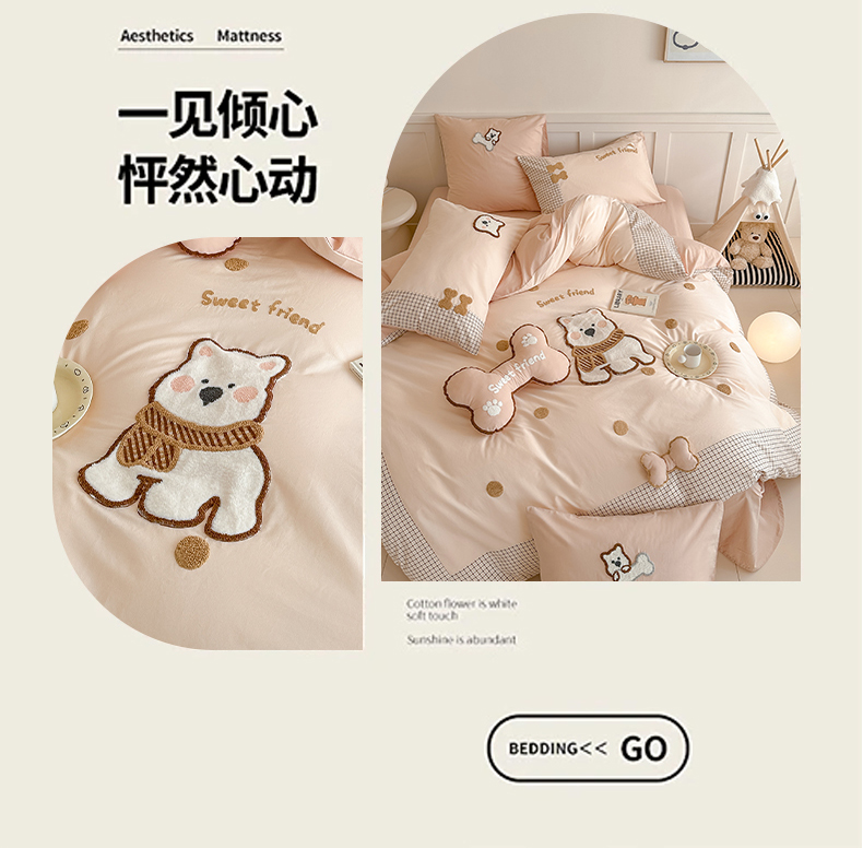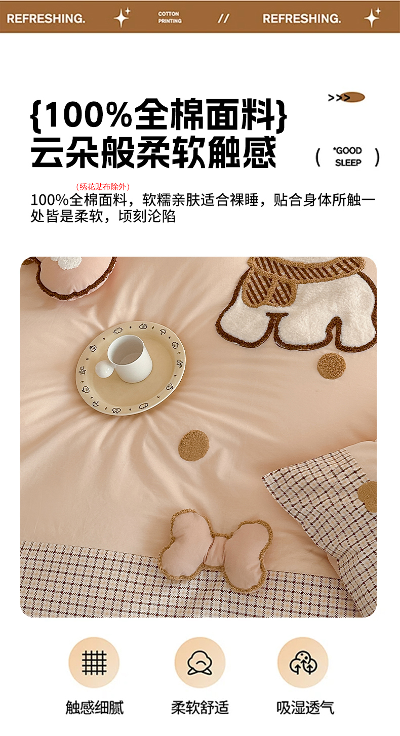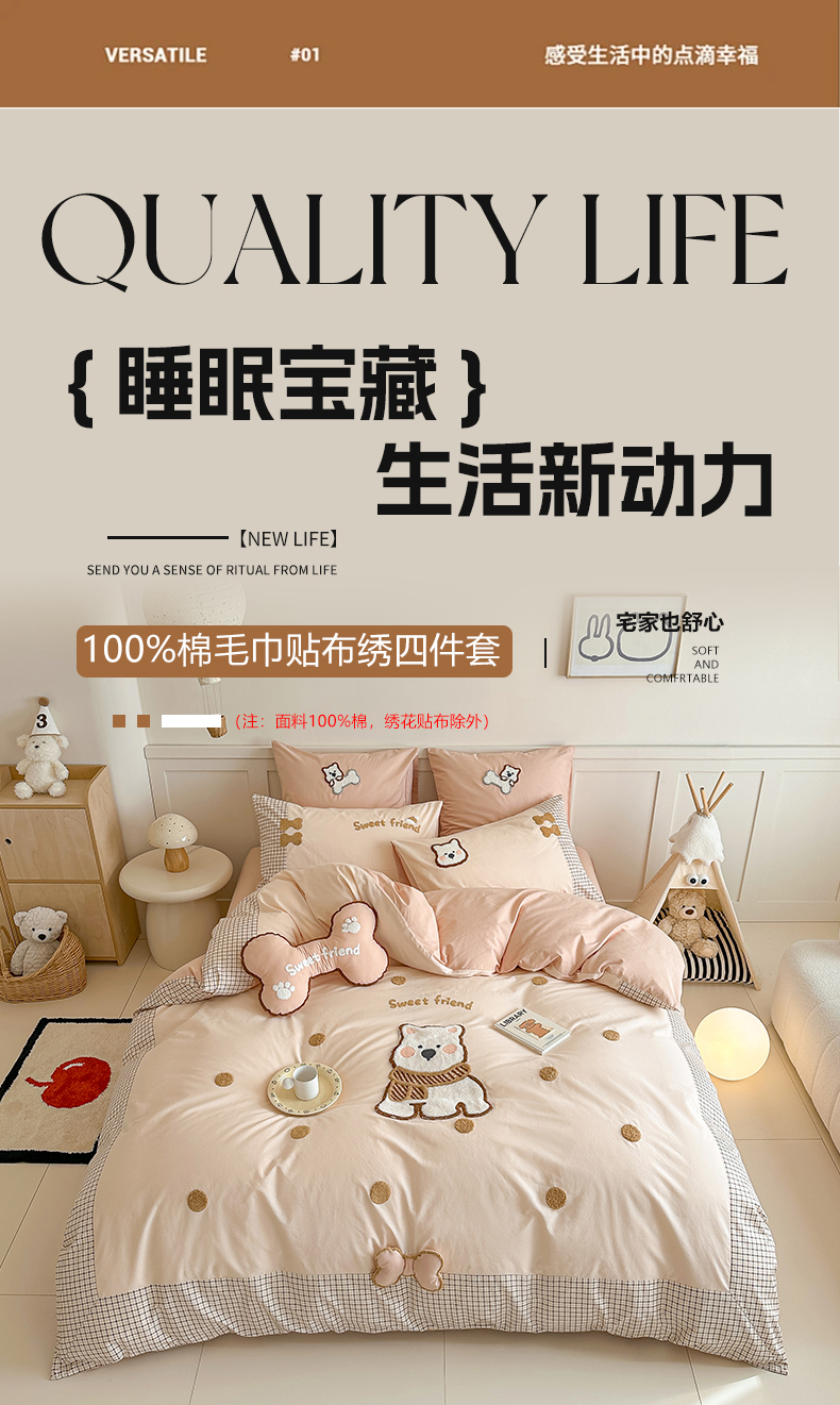 当前位置: 91家纺网 > 商品网购 > 床品套件 > 四件套 > 全棉普通四件套 > (总)恋佳居 2025新款A类全棉水洗棉贴布毛巾绣四件套(控价:220/260)