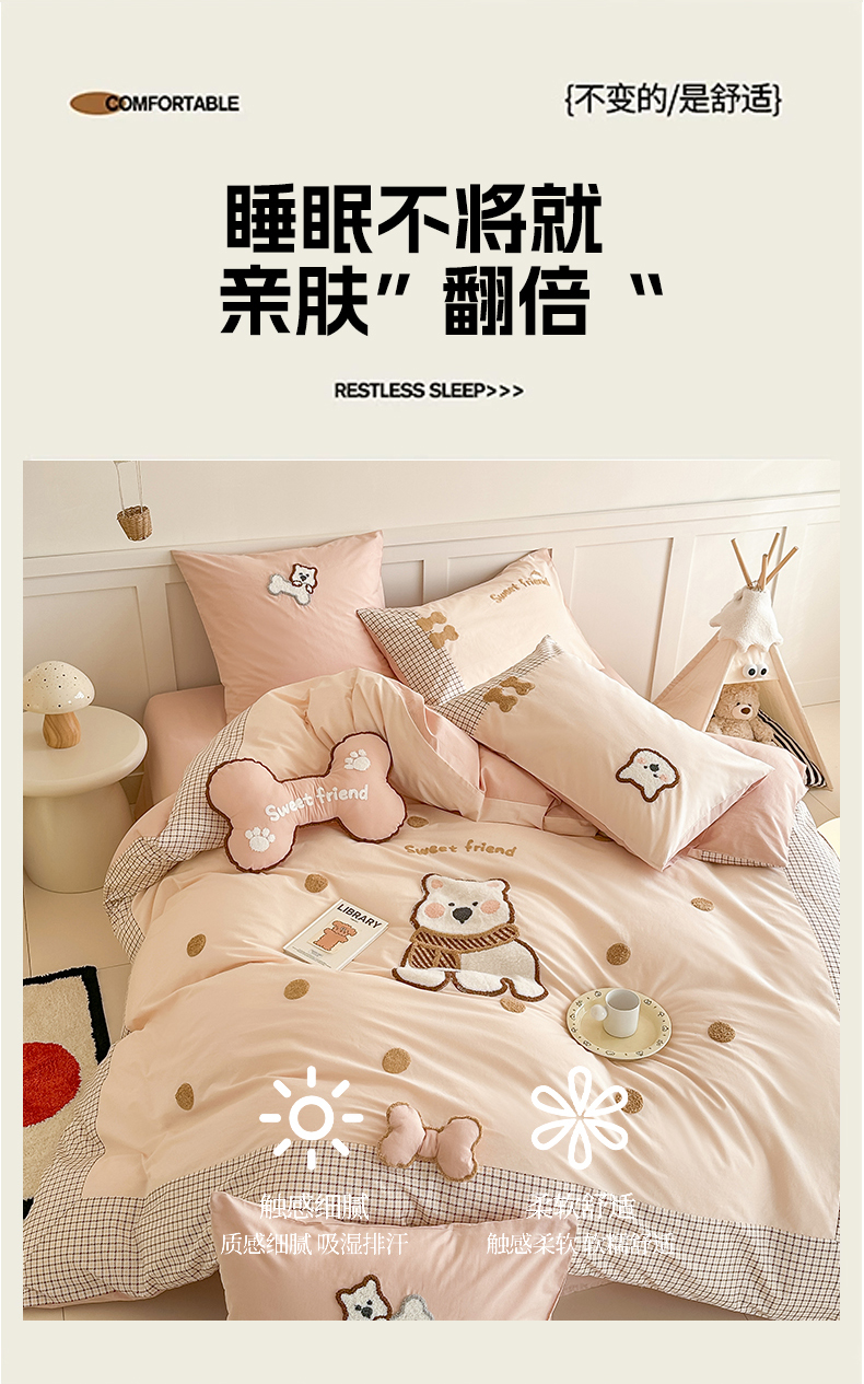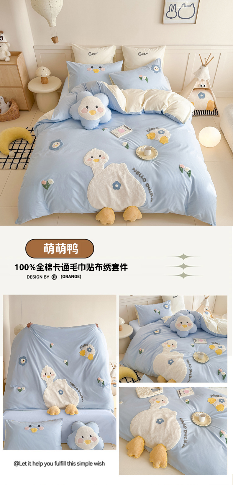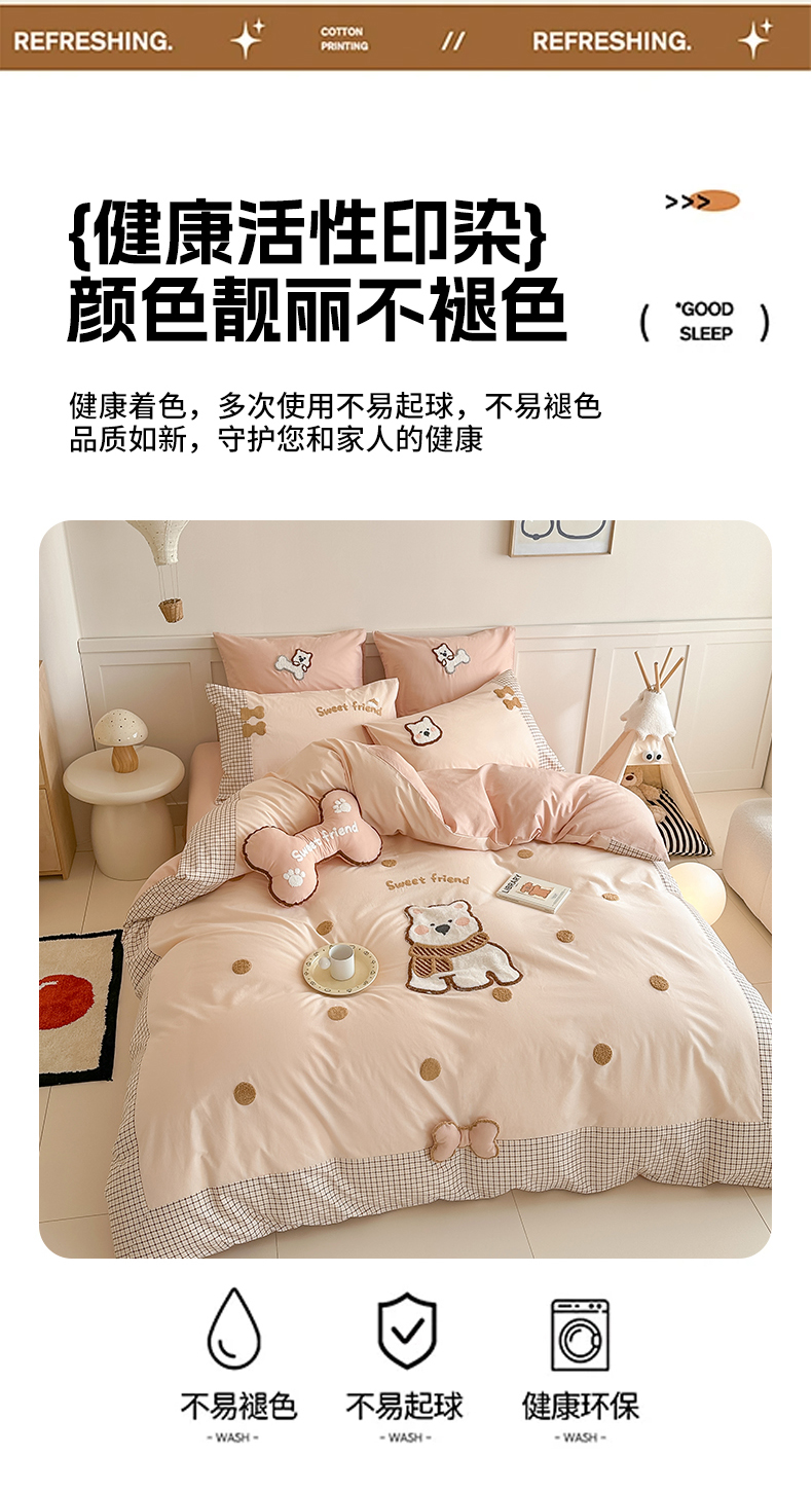 当前位置: 91家纺网 > 商品网购 > 床品套件 > 四件套 > 全棉普通四件套 > (总)恋佳居 2025新款A类全棉水洗棉贴布毛巾绣四件套(控价:220/260)