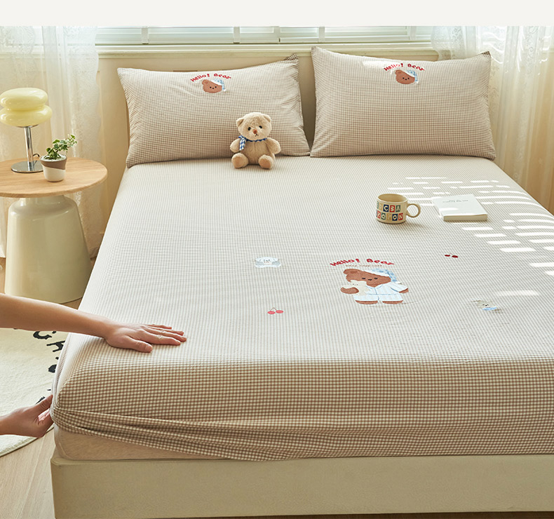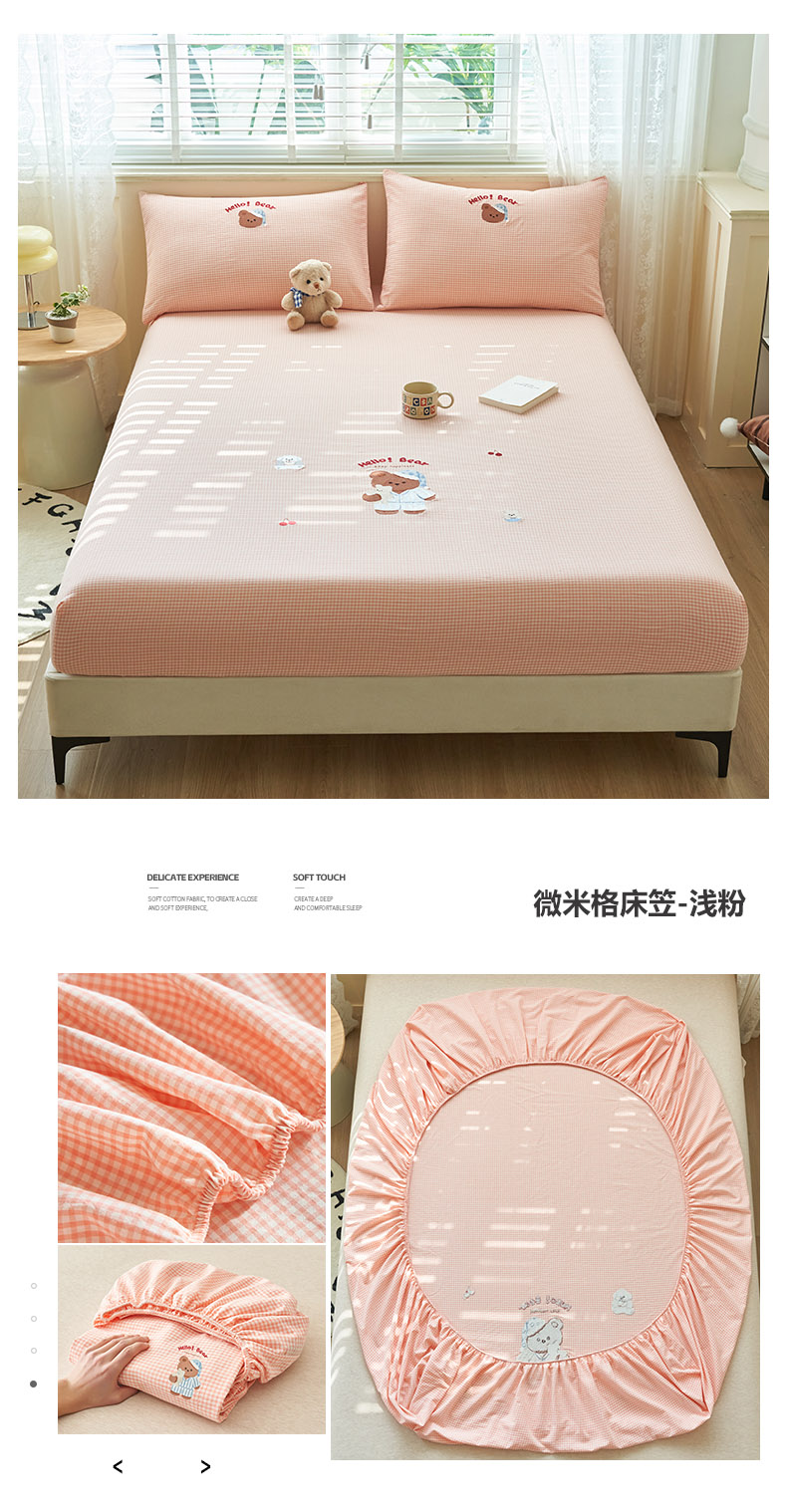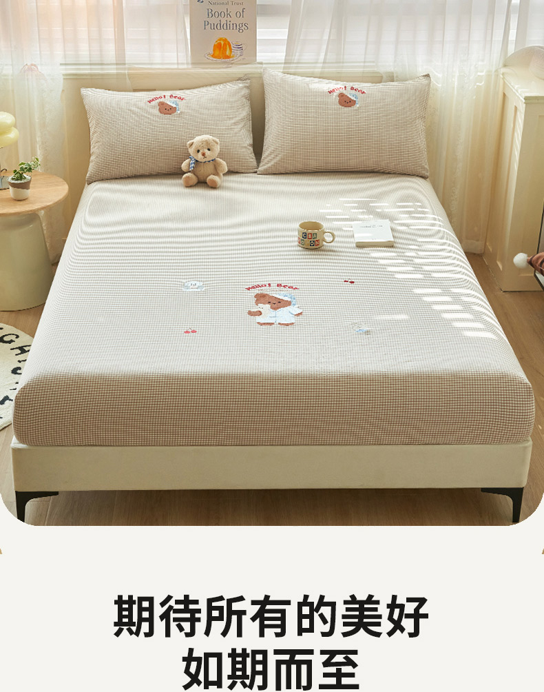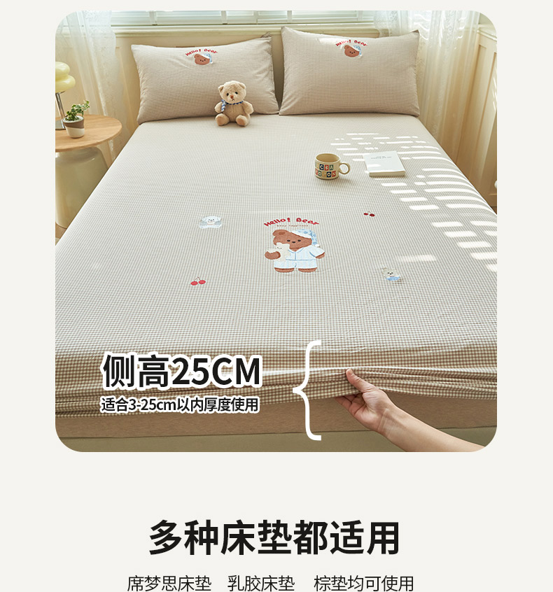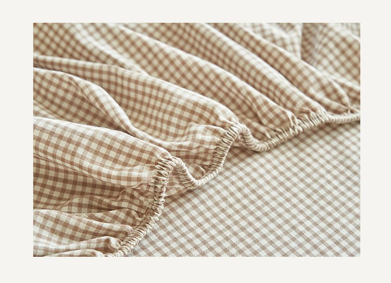寐绸家纺 2025新款纯棉色织水洗棉微米格单床笠 微米格床笠-驼色