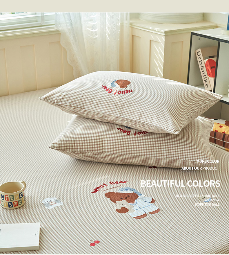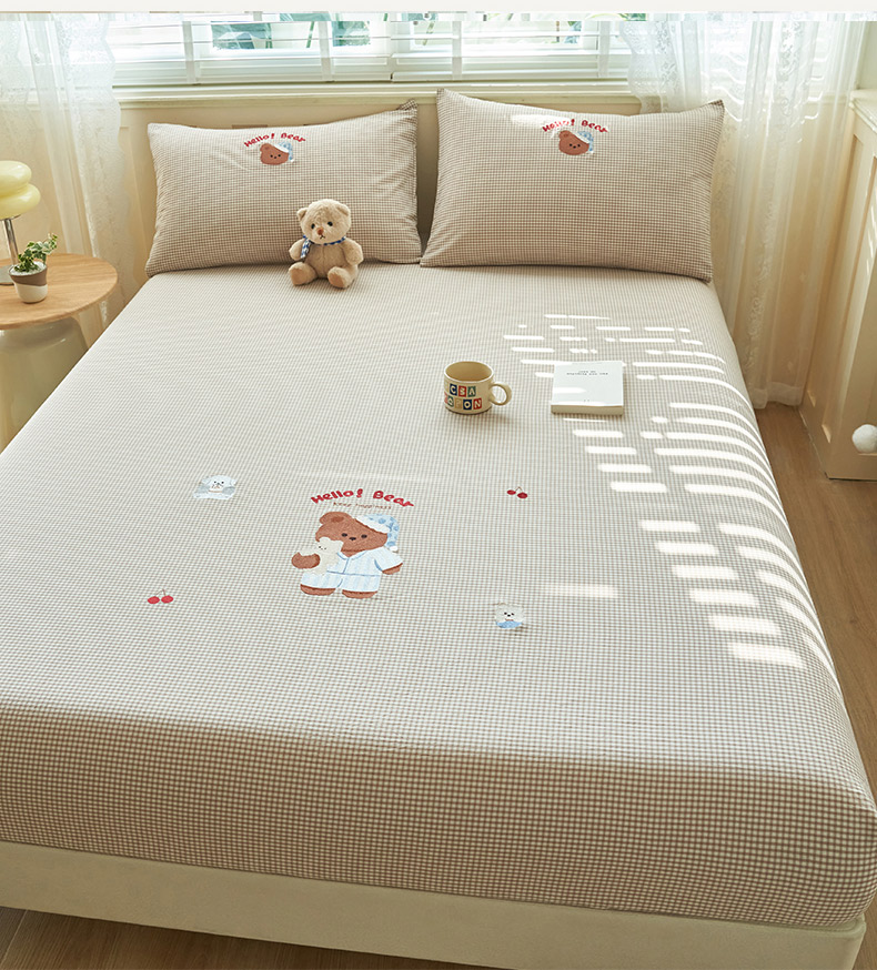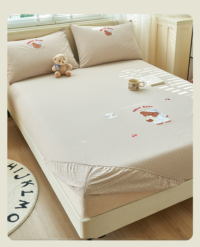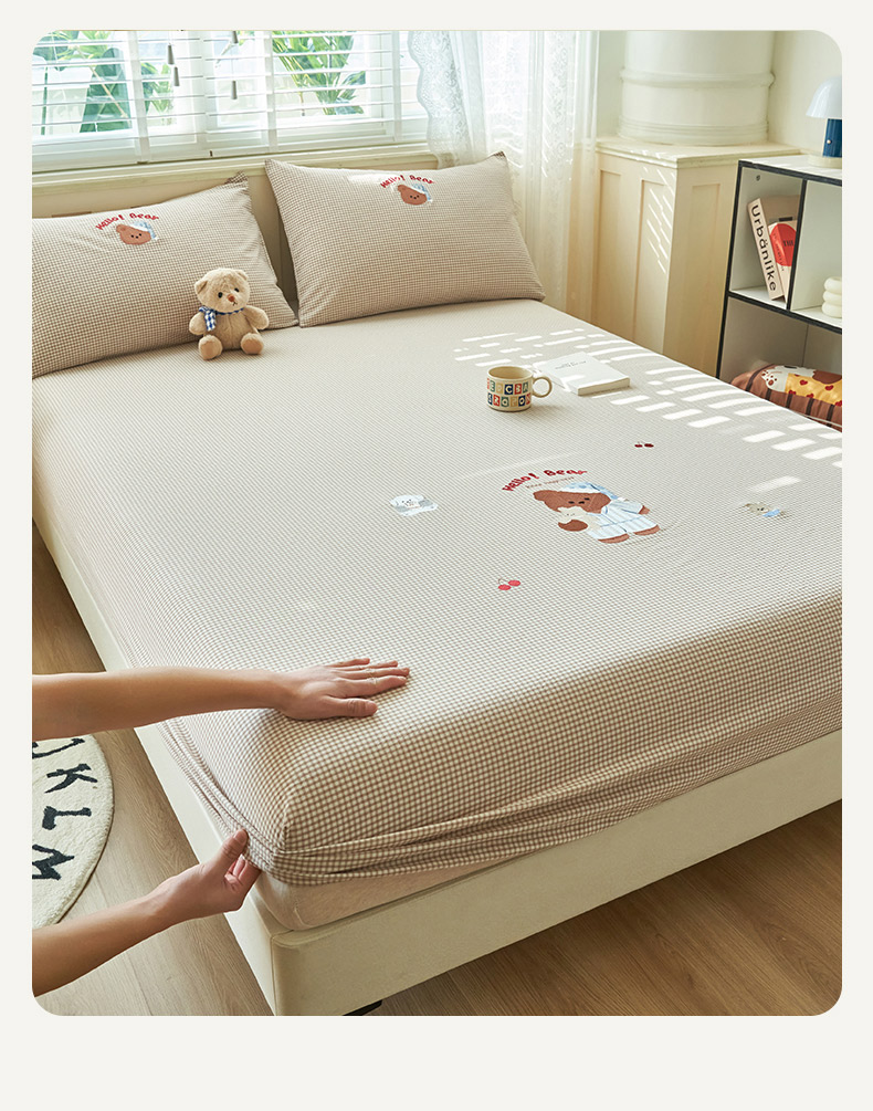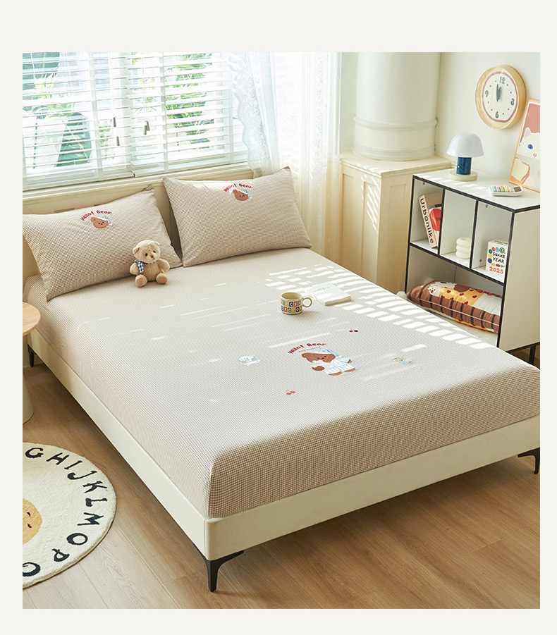 寐绸家纺 2025新款纯棉色织水洗棉微米格单床笠 微米格床笠-驼色