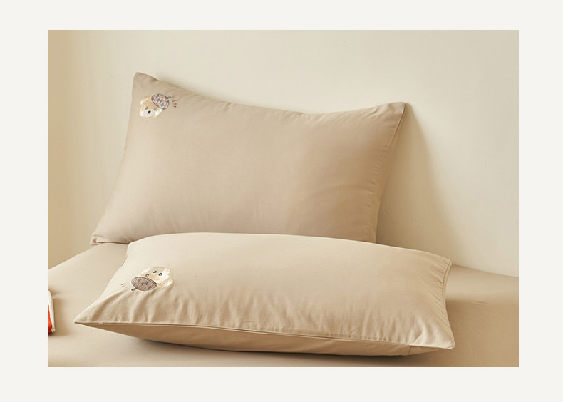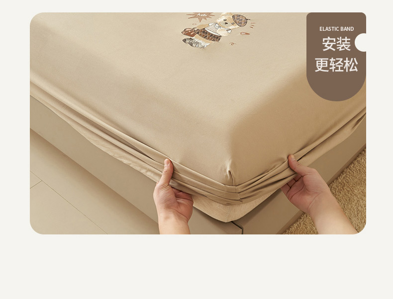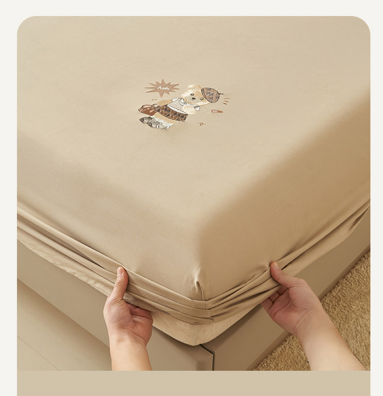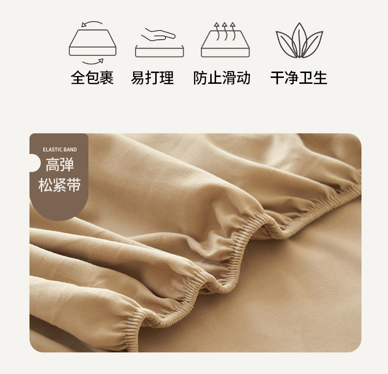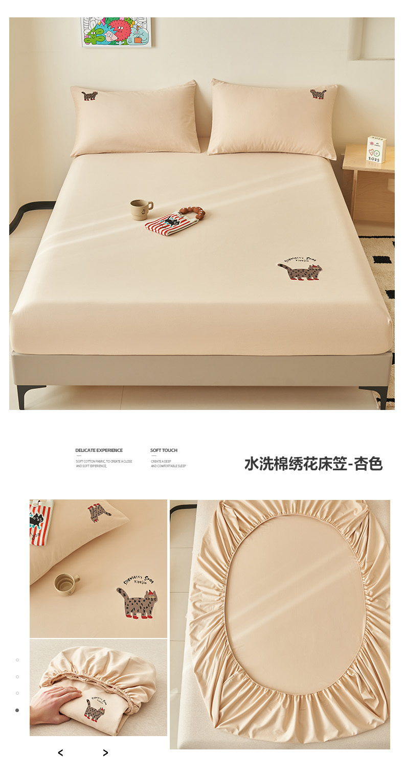 • 91家纺网 家纺一手货源 找家纺 寐绸家纺 2025新款纯棉水洗棉纯色绣花单床笠 水洗棉绣花床笠-驼色