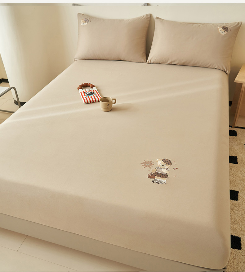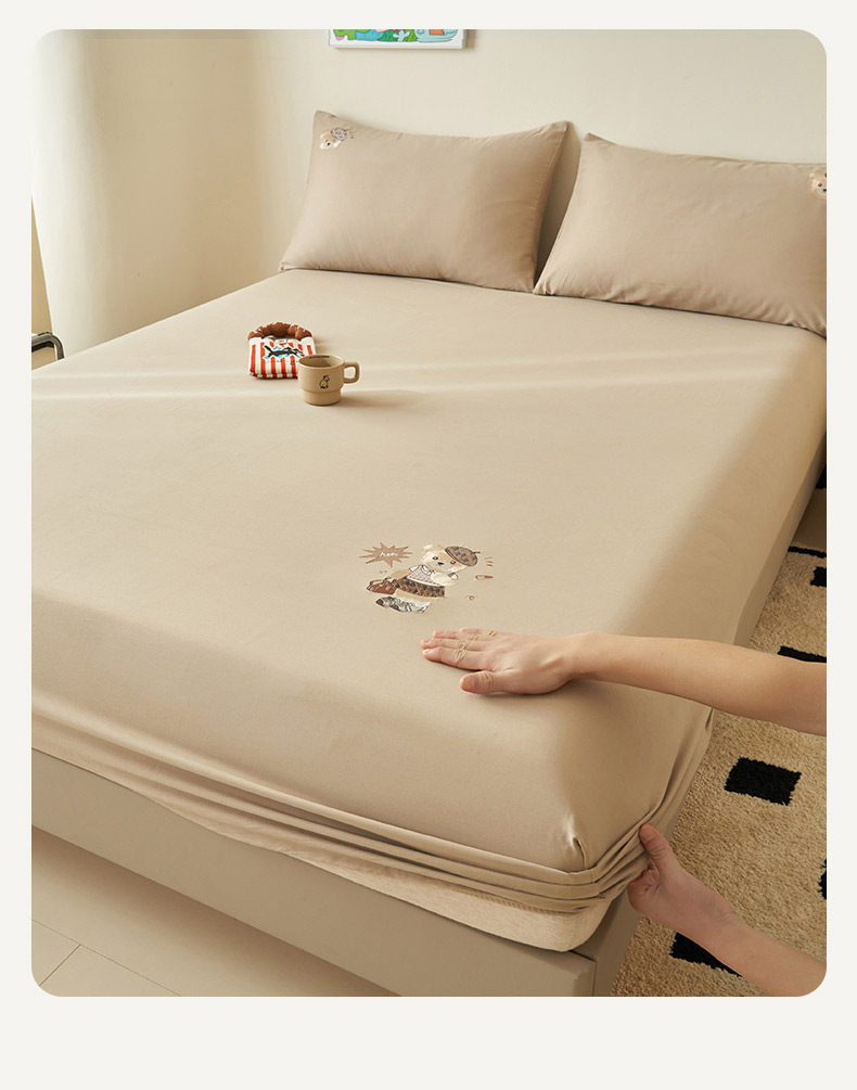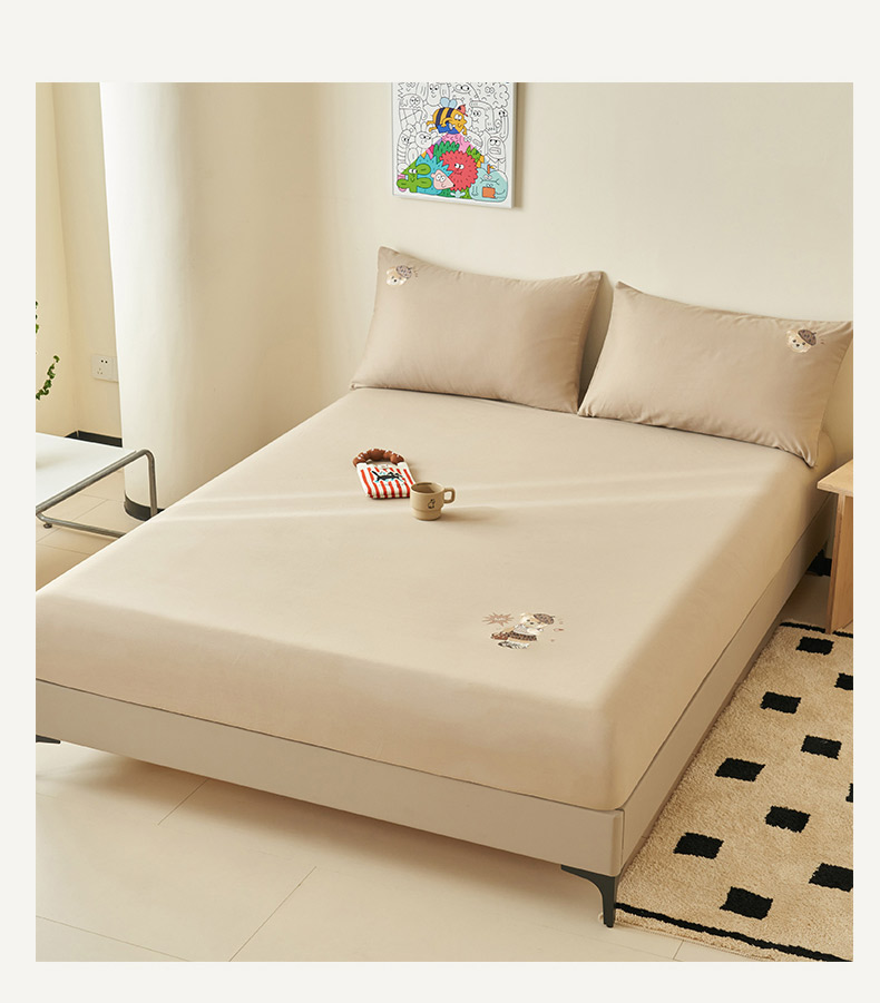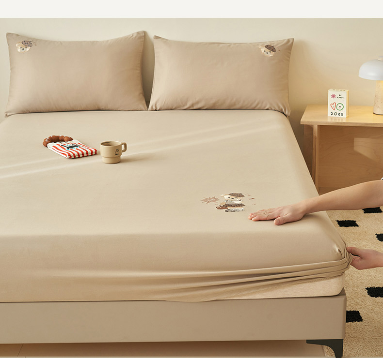 寐绸家纺 2025新款纯棉水洗棉纯色绣花单床笠 水洗棉绣花床笠-驼色
