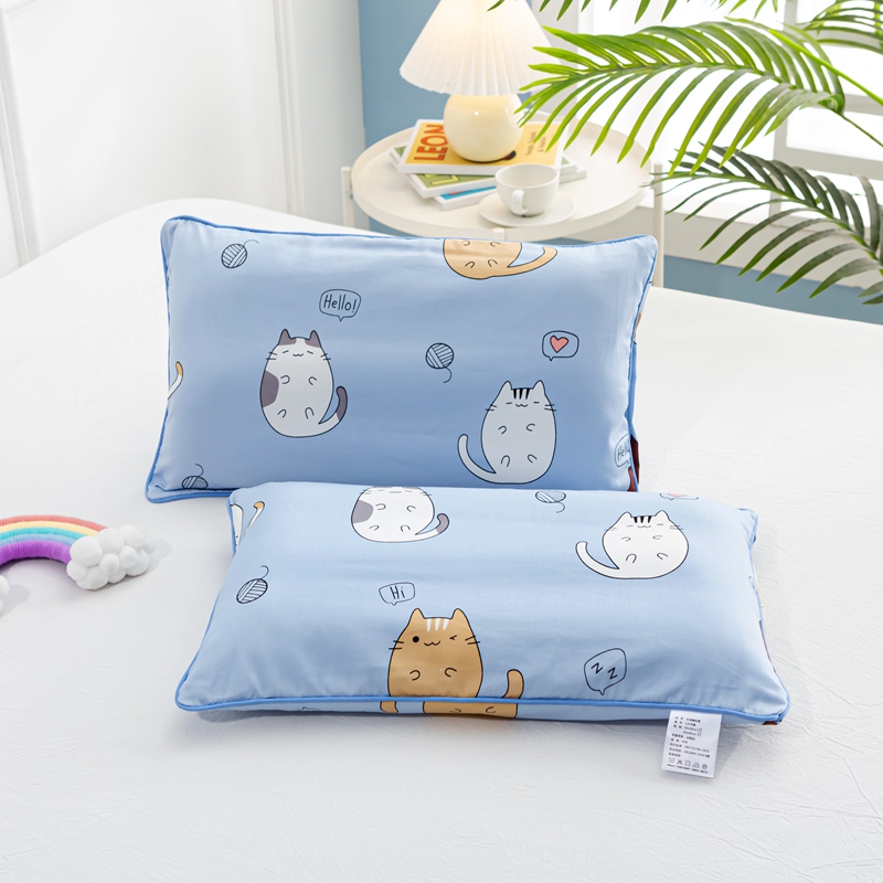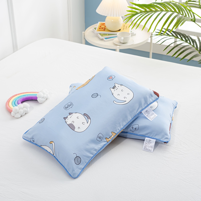 萌番宝 A类新款60支长绒棉纯棉儿童枕套枕头 猫肚蓝