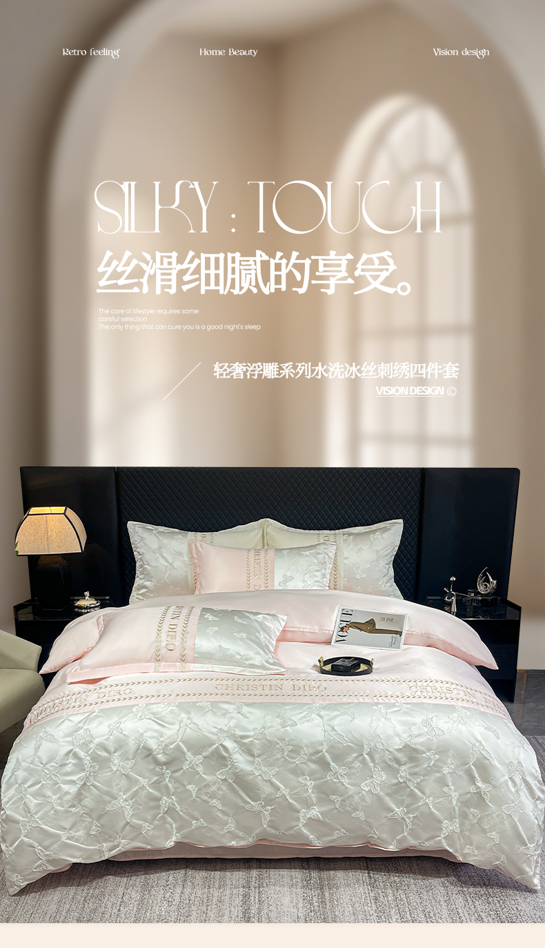(总)艾米家居 2025新款轻奢浮雕系列凉感丝水洗真丝四件套