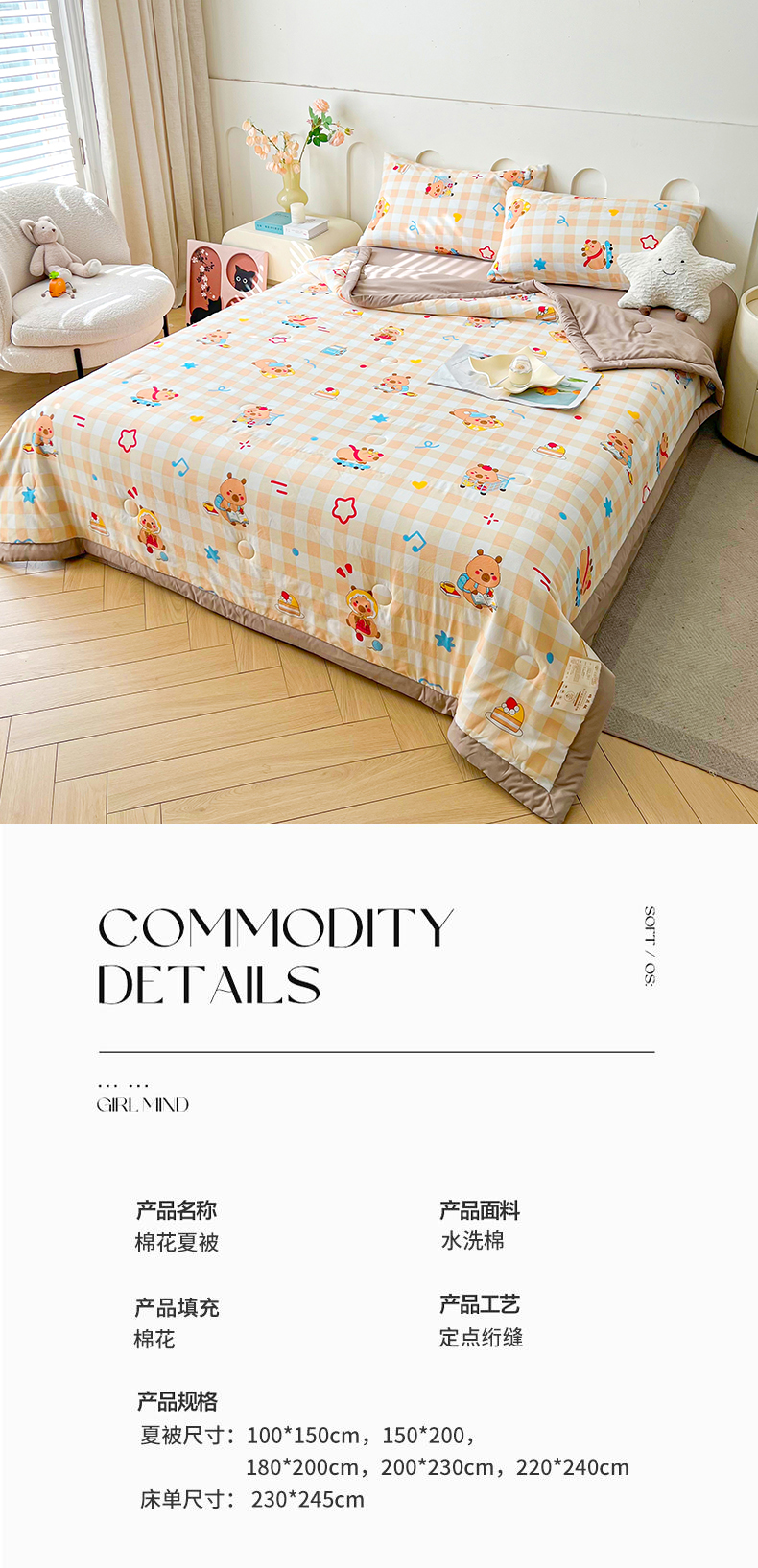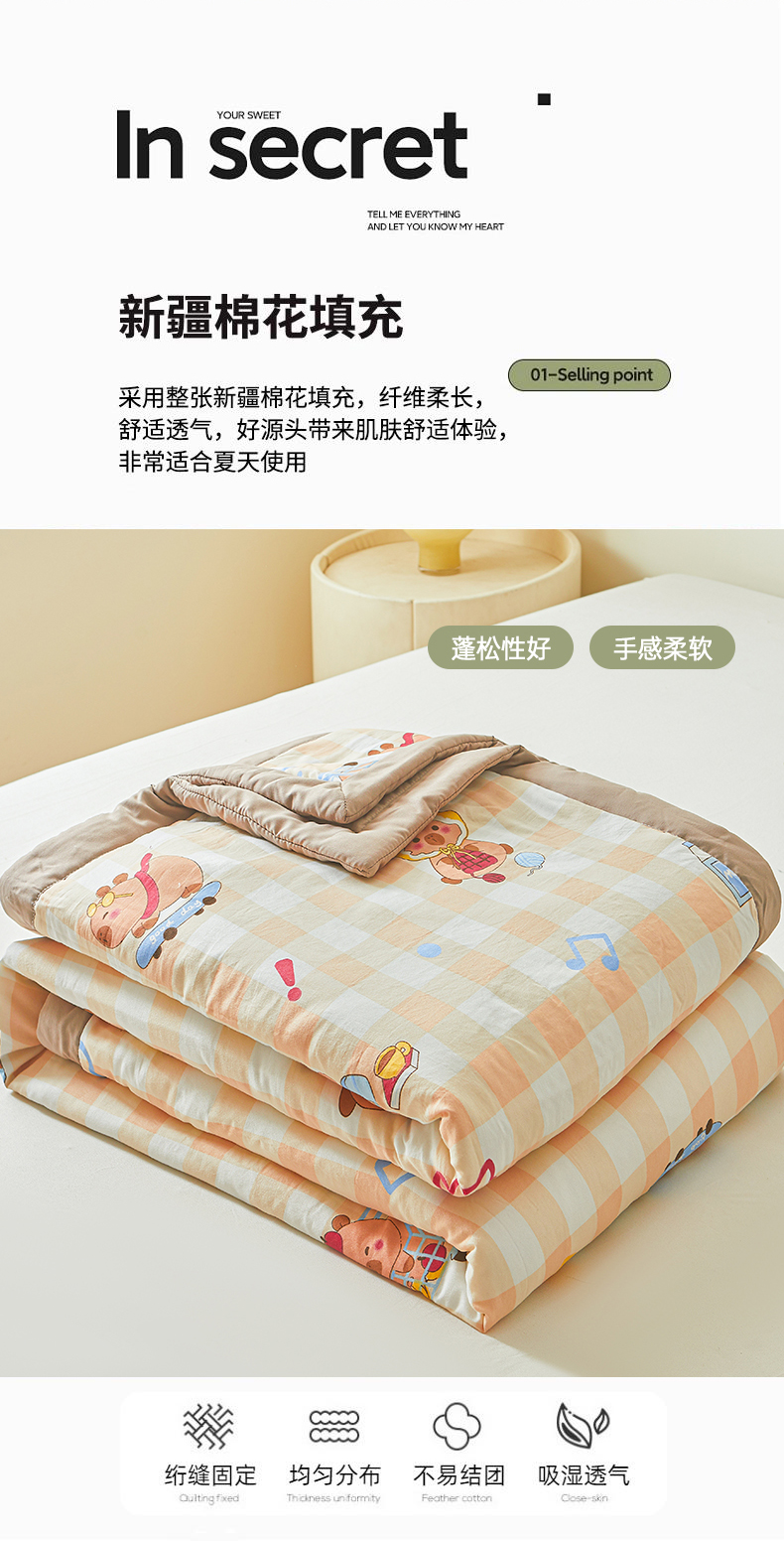 商品名称:爱屋及屋2025新款棉花夏被 卡皮巴拉