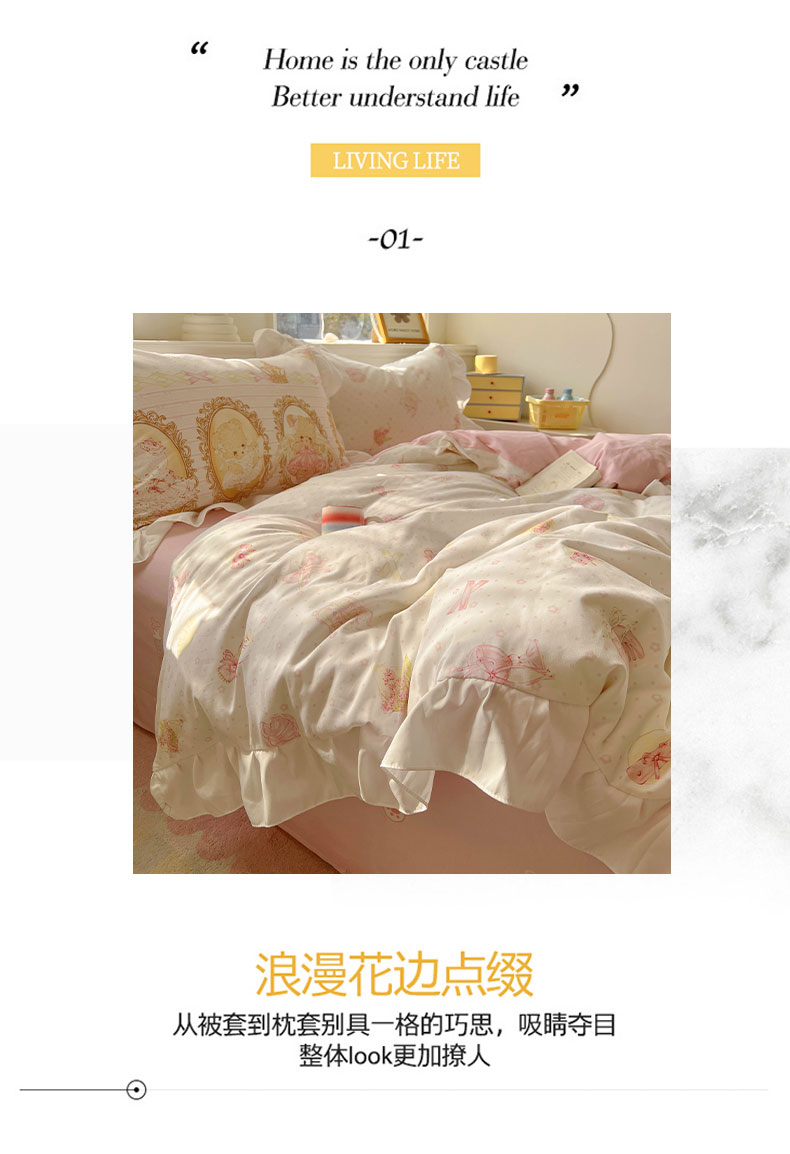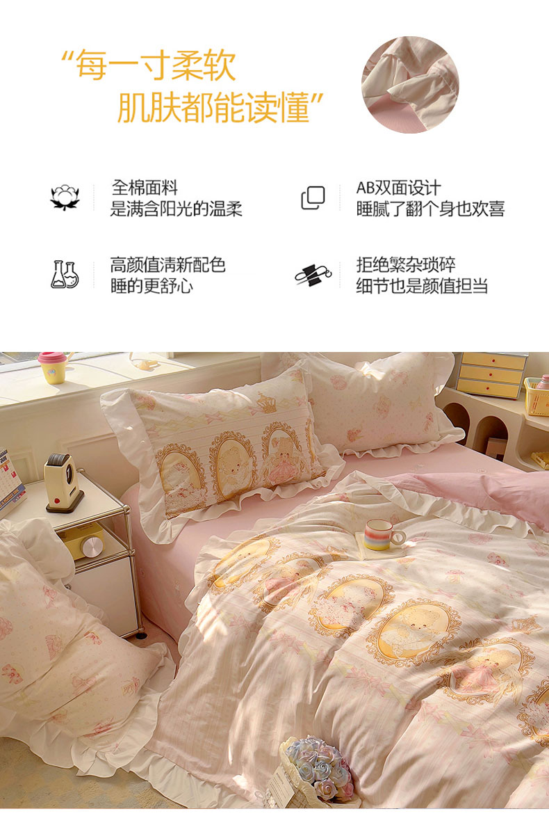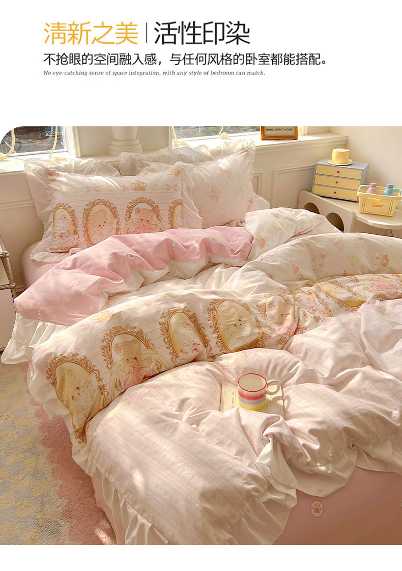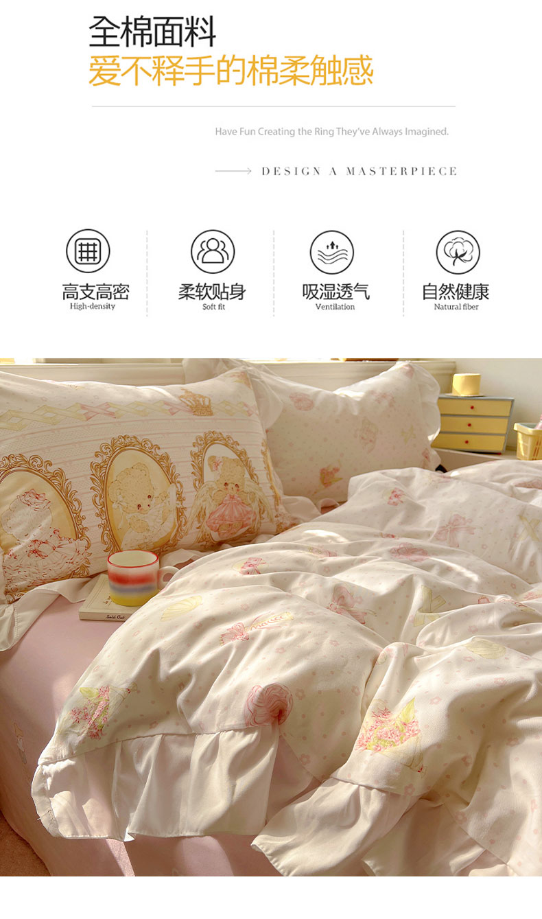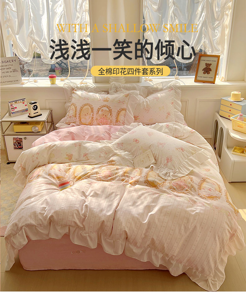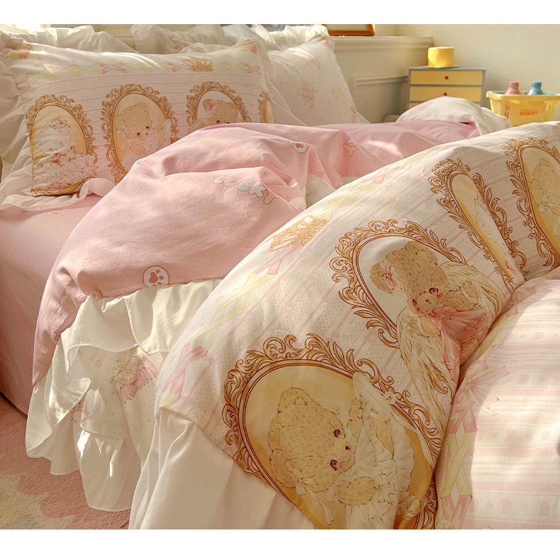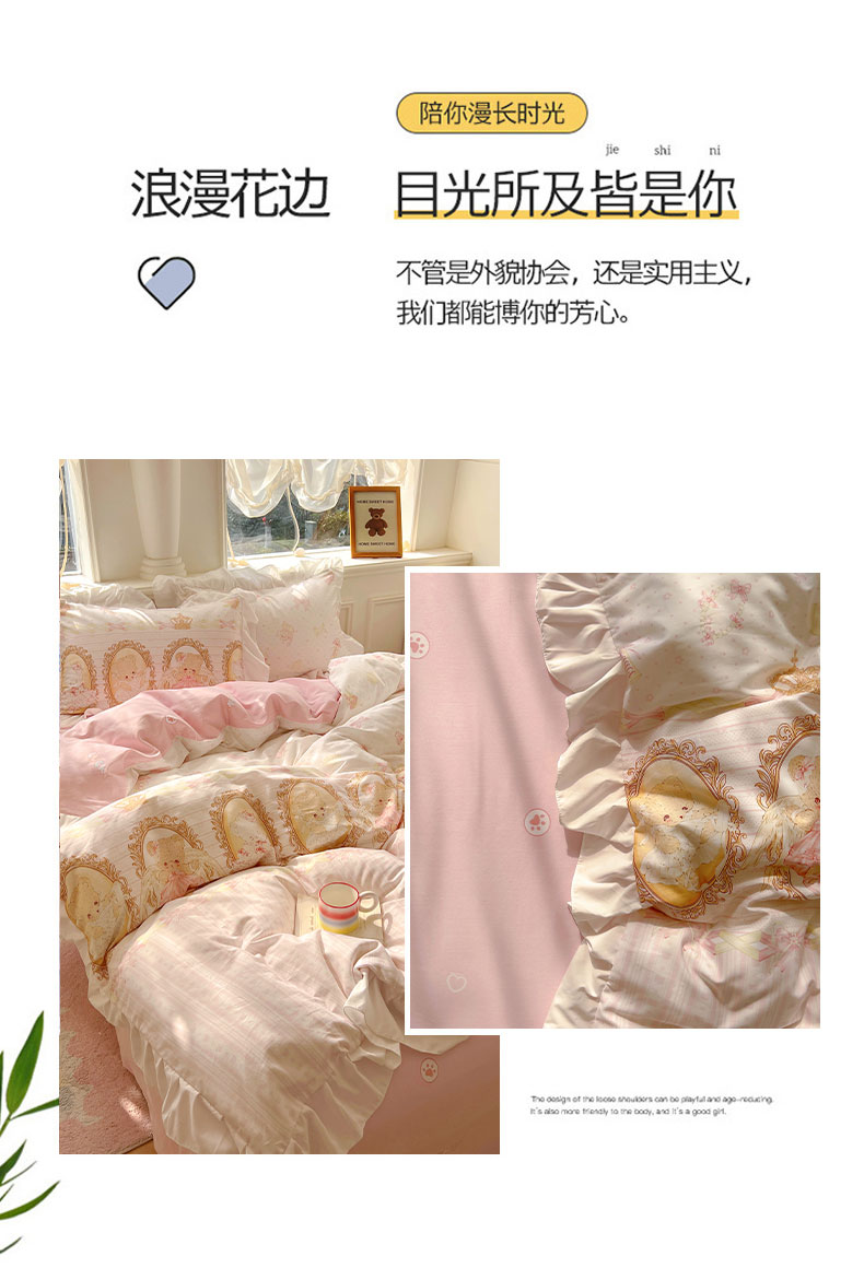 当前位置: 91家纺网 > 商品网购 > 床品套件 > 四件套 > 全棉普通四件套 > 浩诚 2025新款洛丽塔纯棉花边款四件套 芭蕾小熊-米