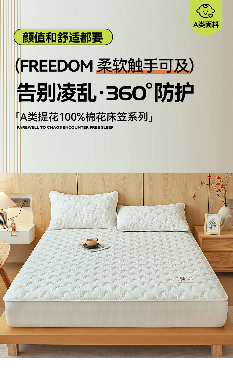 • 91家纺网 家纺一手货源 找家纺 布卢姆床垫 2025新款A类亲肤提花100%新疆棉花床笠雅岚系列 雅岚-本白