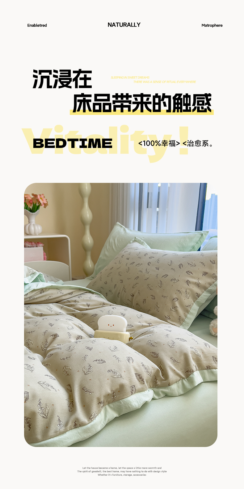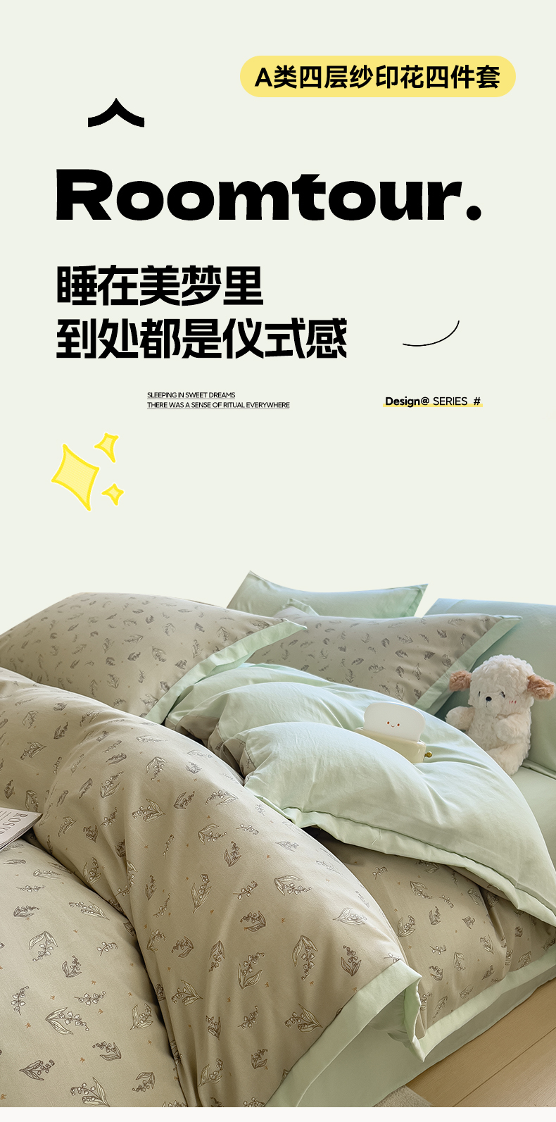 当前位置: 91家纺网 > 商品网购 > 床品套件 > 四件套 > 双层纱四件套 > 兄弟坊 2025新款小清新四层纱印花四件套 甜蜜邂逅