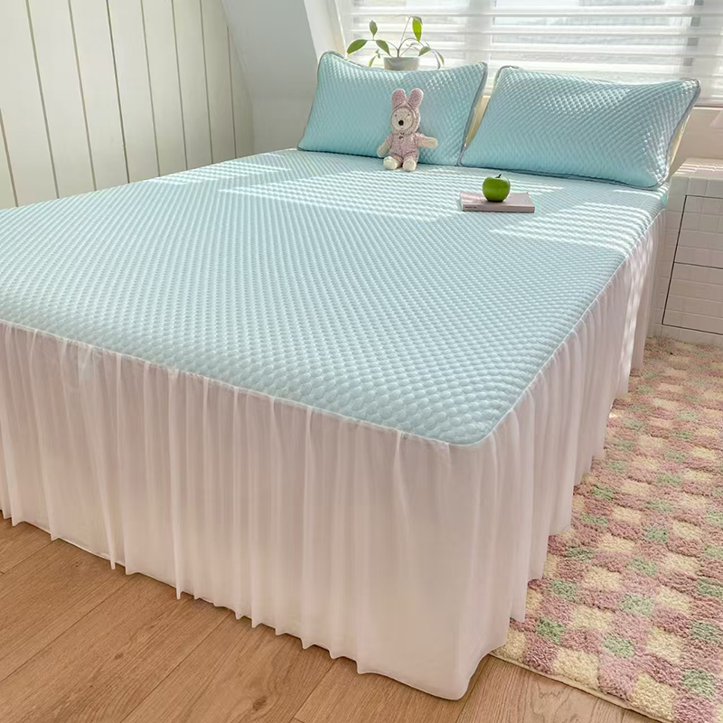 商品名称:柏薇 2025新款3D豆豆凉席冰丝席按摩席夏凉席床单床裙款三件套热销款 海湾蓝床裙款