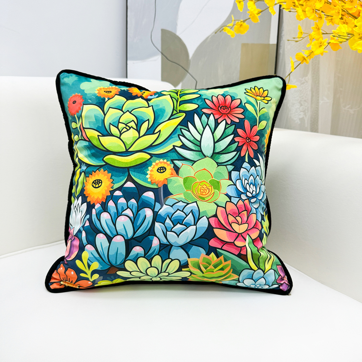 爱家居 2025新款抱枕沙发新中式靠垫轻奢高级感靠枕床头大靠背正方形抱枕套卡通花卉 多肉