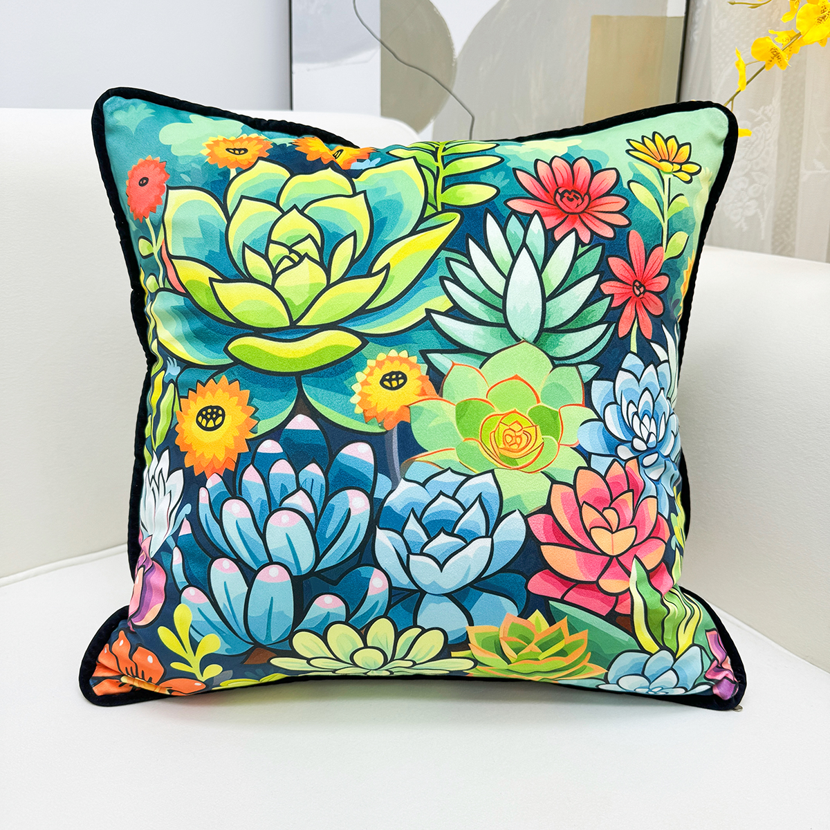 商品名称:爱家居 2025新款抱枕沙发新中式靠垫轻奢高级感靠枕床头大靠背正方形抱枕套卡通花卉 多肉