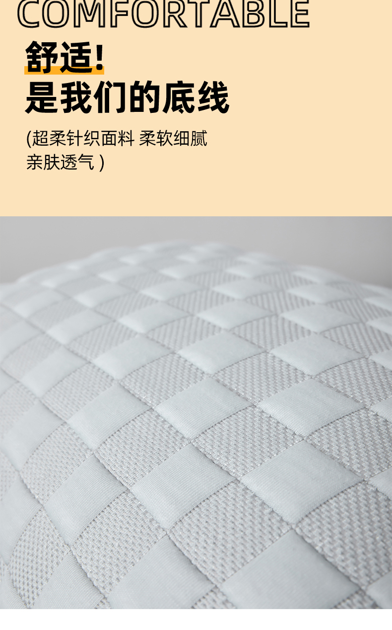 当前位置: 91家纺网 > 商品网购 > 枕头/枕芯/保健枕/颈椎枕 > 珍贝家纺 2025新款超柔针织纯色小方块羽丝枕枕头枕芯 小方块羽丝枕-乳白色48*74cm/只(中枕750g)