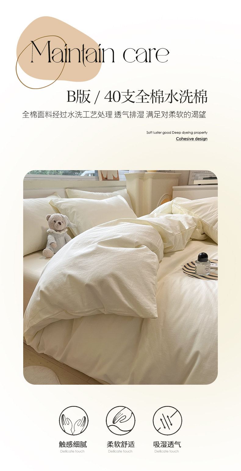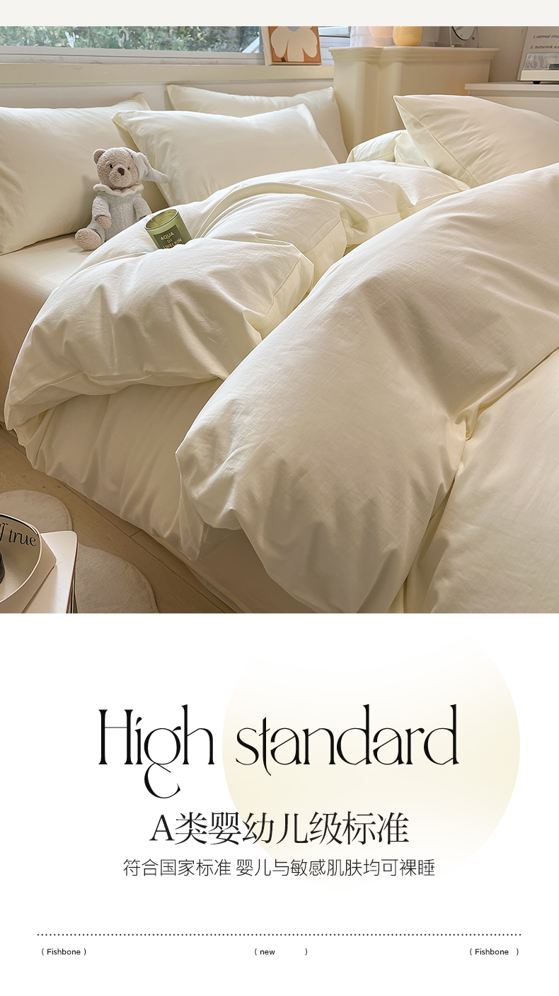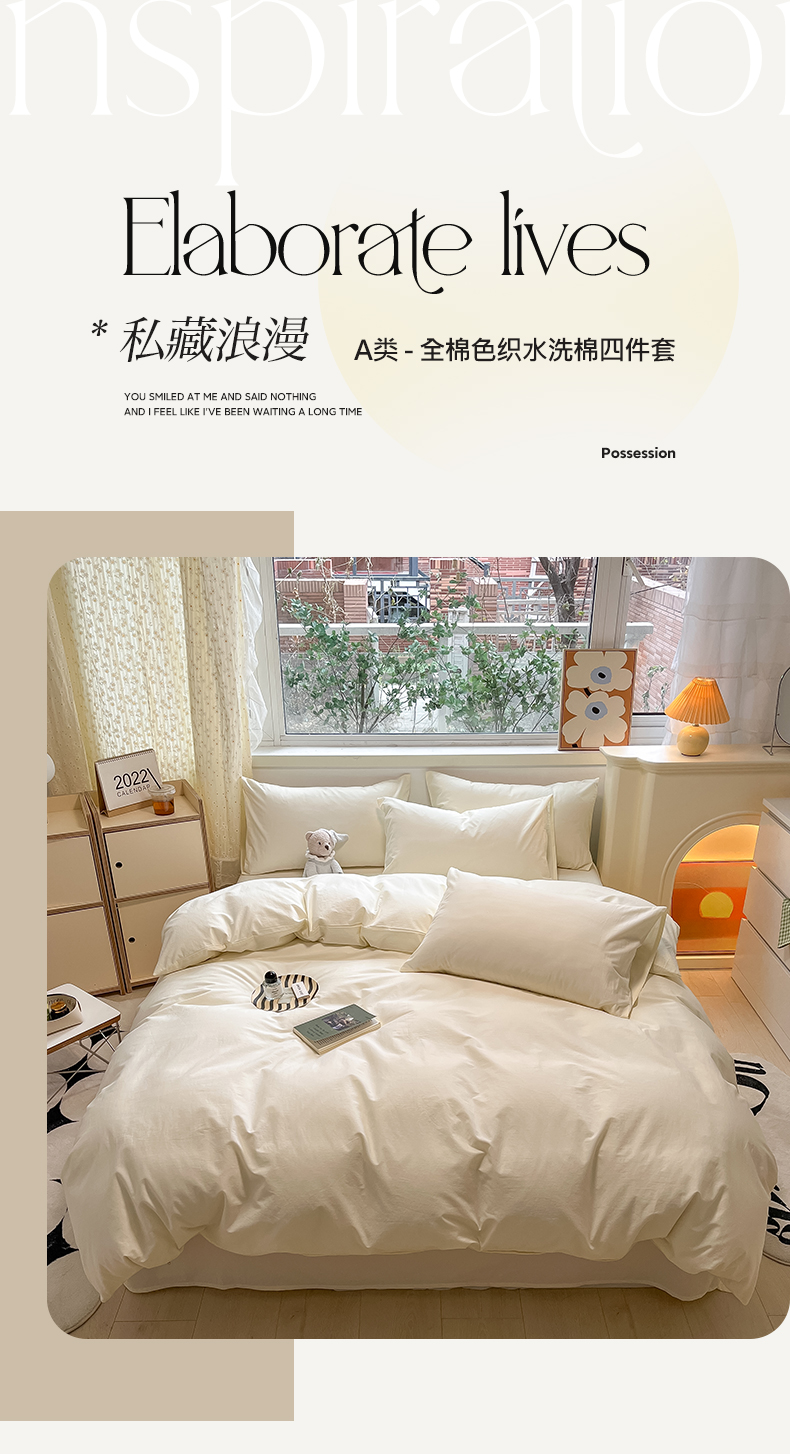 卡巴伦家纺 2025新款A版色织32支B版40支纯棉A类水洗棉四件套单被套 奶昔白