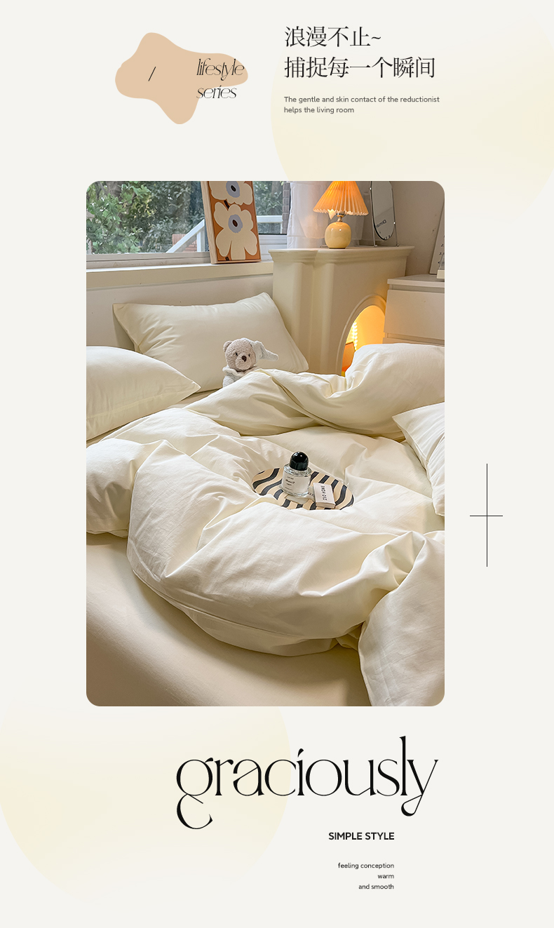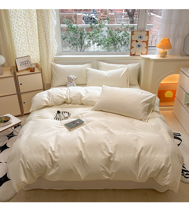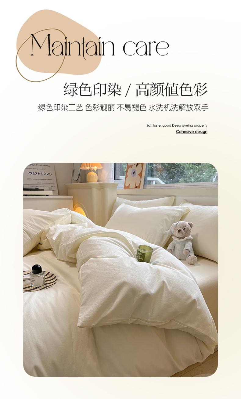 卡巴伦家纺 2025新款A版色织32支B版40支纯棉A类水洗棉四件套单被套 奶昔白