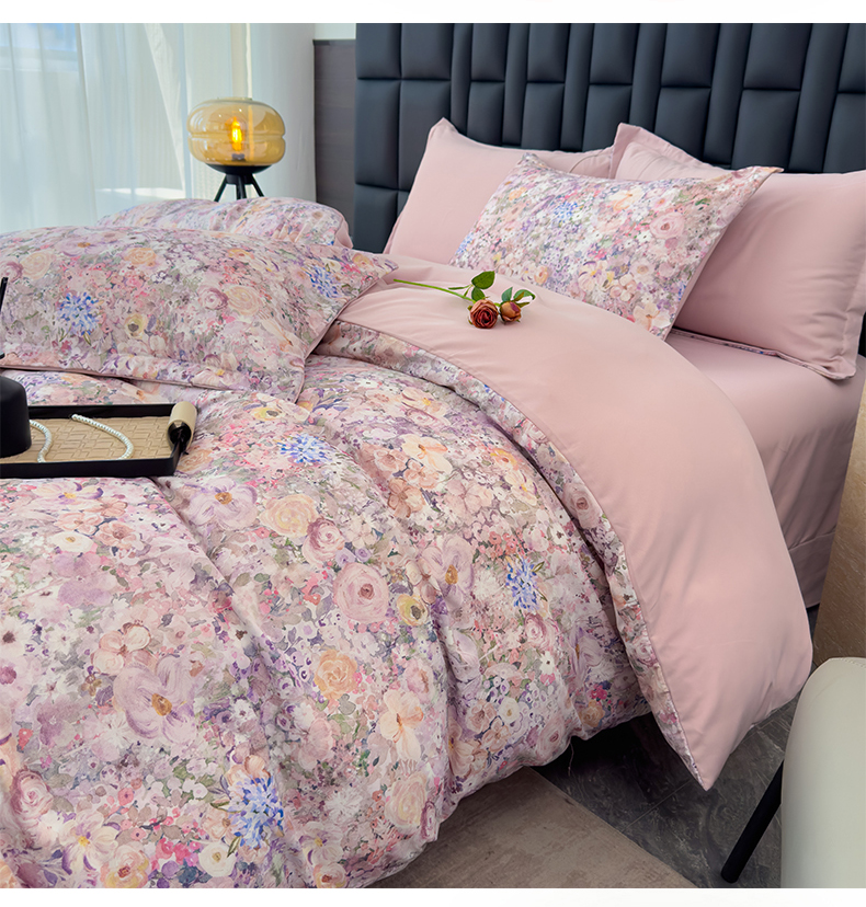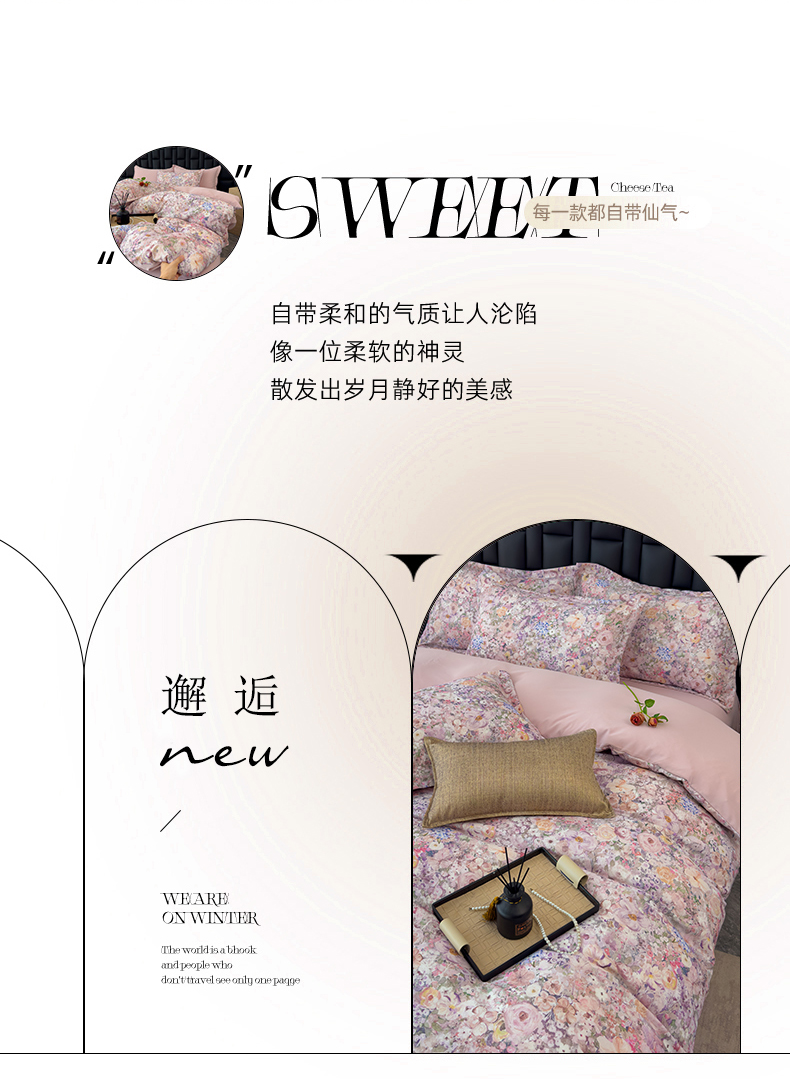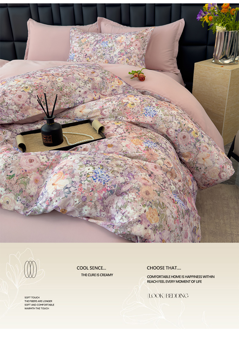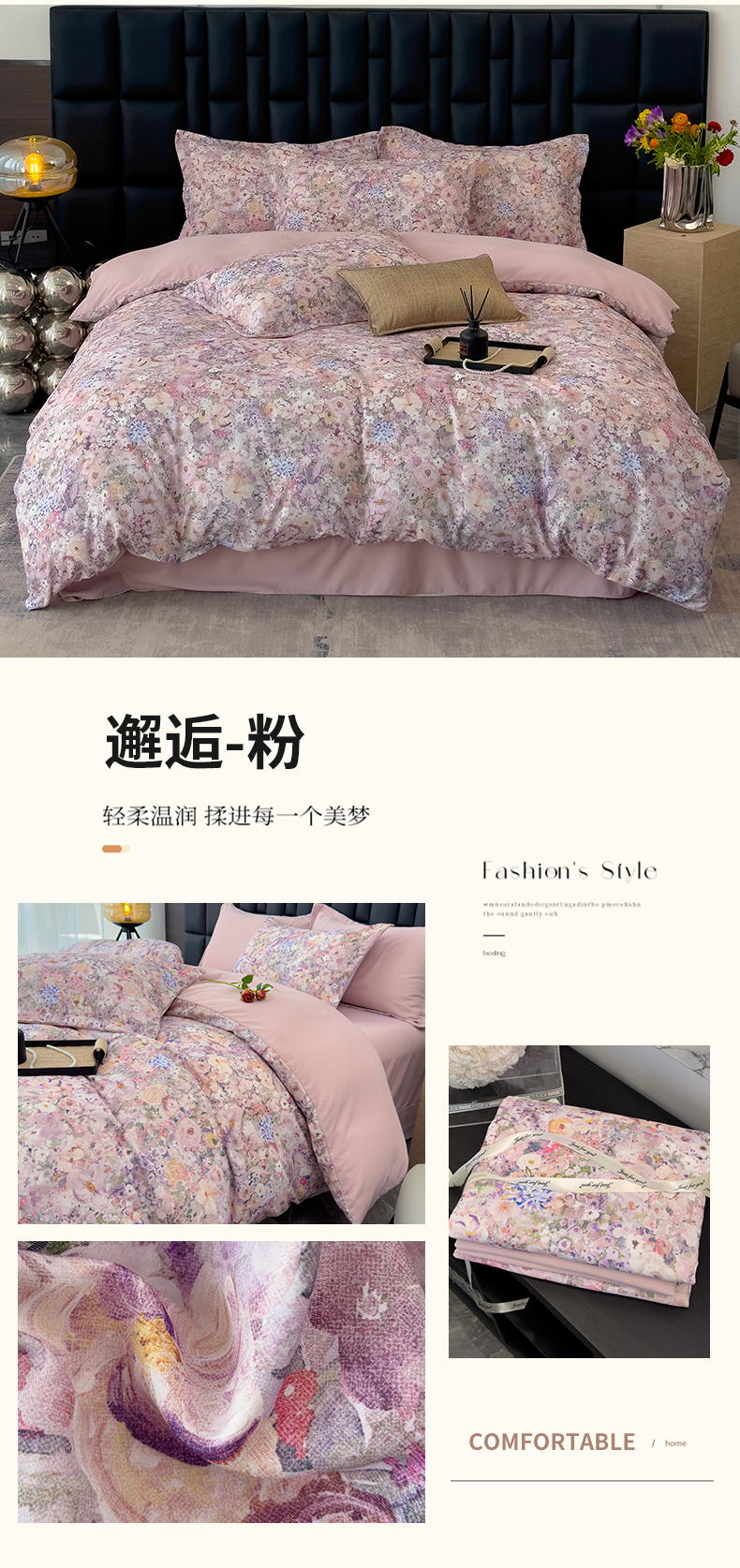 (总)竹合 2025新款数码印花轻奢凉感四件套,佳人醉-粉,希雅咖,邂逅-粉,虞美人咖,莫奈