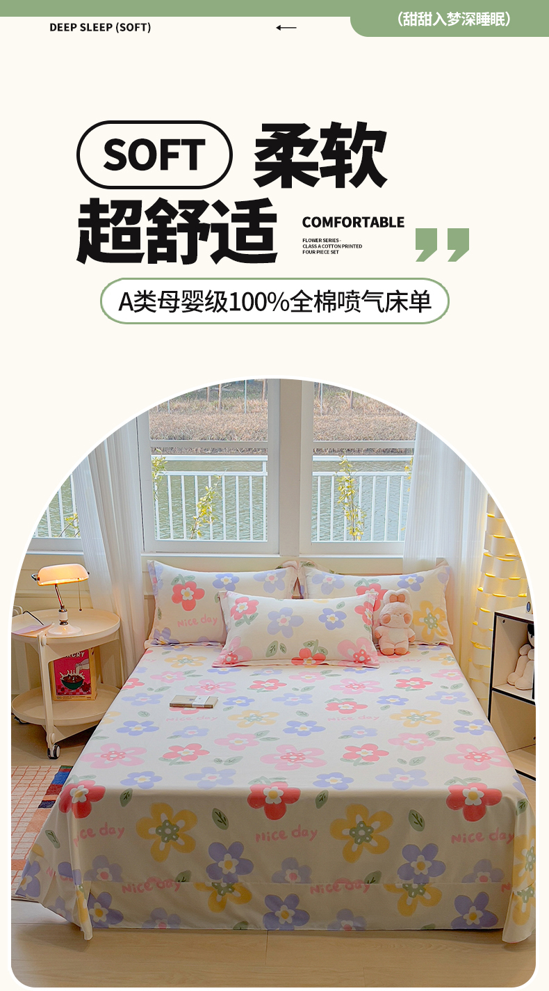• 91家纺网 家纺一手货源 找家纺 (总)拾物记 2026新款第一批12868A类全棉单品床笠系列(床笠宽度预留10厘米缩水尺寸, 90x200床笠高度15厘米,适合4-15厘米学生床垫使用,其他尺寸床笠高28cm 适合4-28厘米,森林伙伴,挽星河,爱心喵,彩虹兔,草莓小狗,乘风宇宙,刺绣潮声,点点森林熊,粉粉猫咪酱,滚滚绣球团,花漫歌,简笔小汪,镜子海洋粉,开心派对,快乐宇航员,蓝星动物园,美梦花园,咪咕日常,太空卫士,太空熊,糖果幼儿园,糖纸童年,甜蜜纪念日,星际仔仔,星星柯基,星星童话园,元气小布,云间甜梦