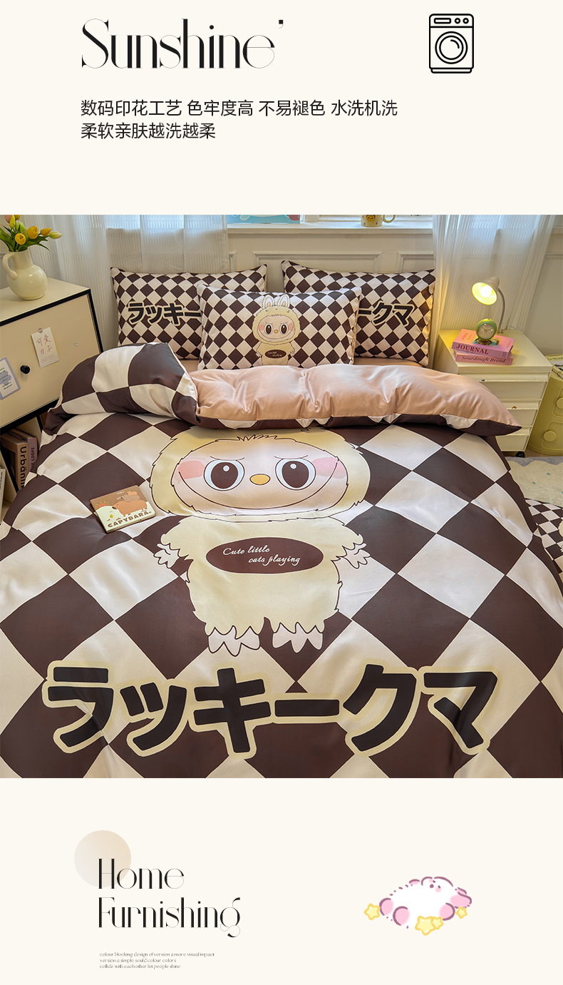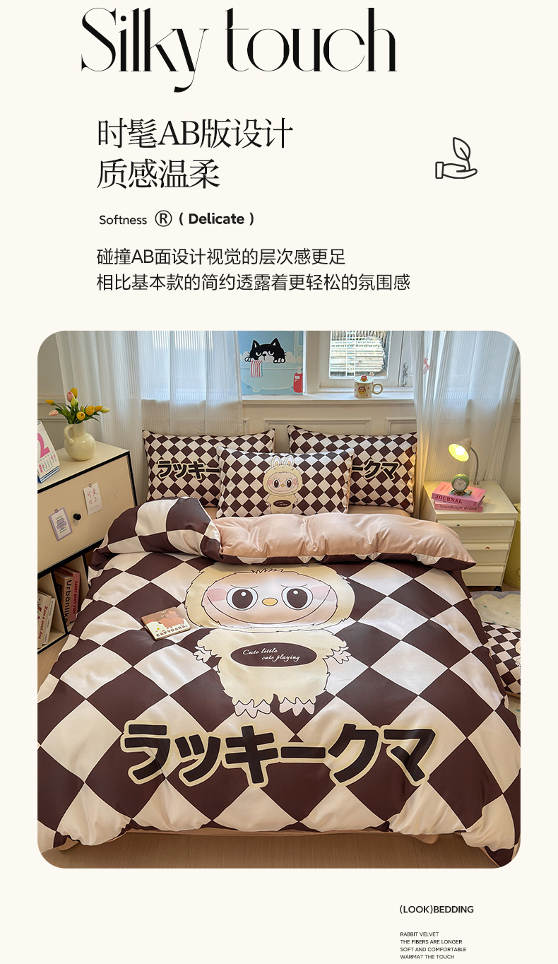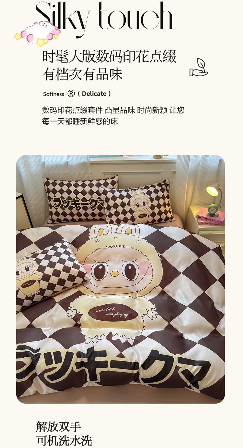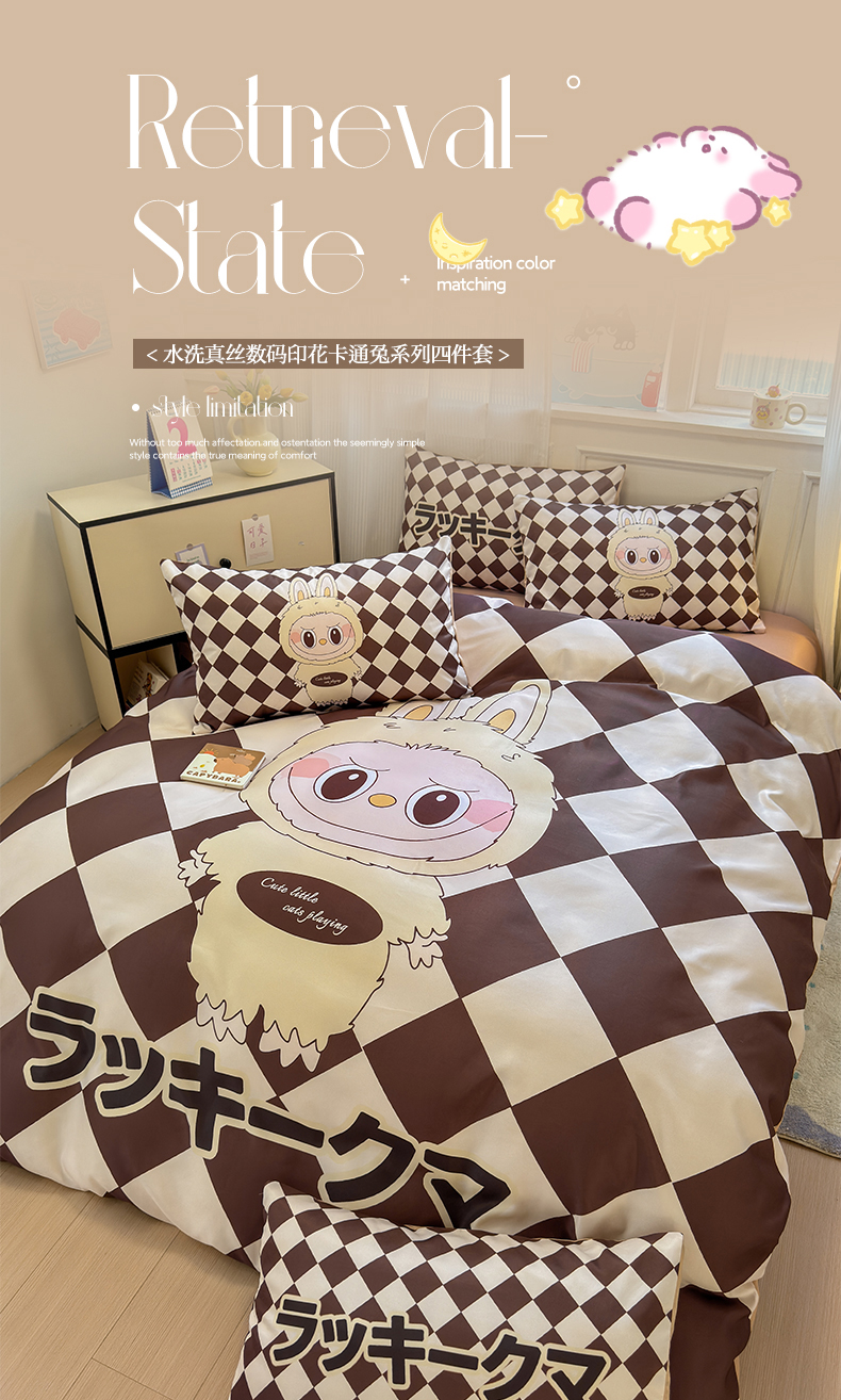 商品名称:摩卡(乐趣) 2025新款水洗真丝数码印花卡通兔系列四件套 菱形兔