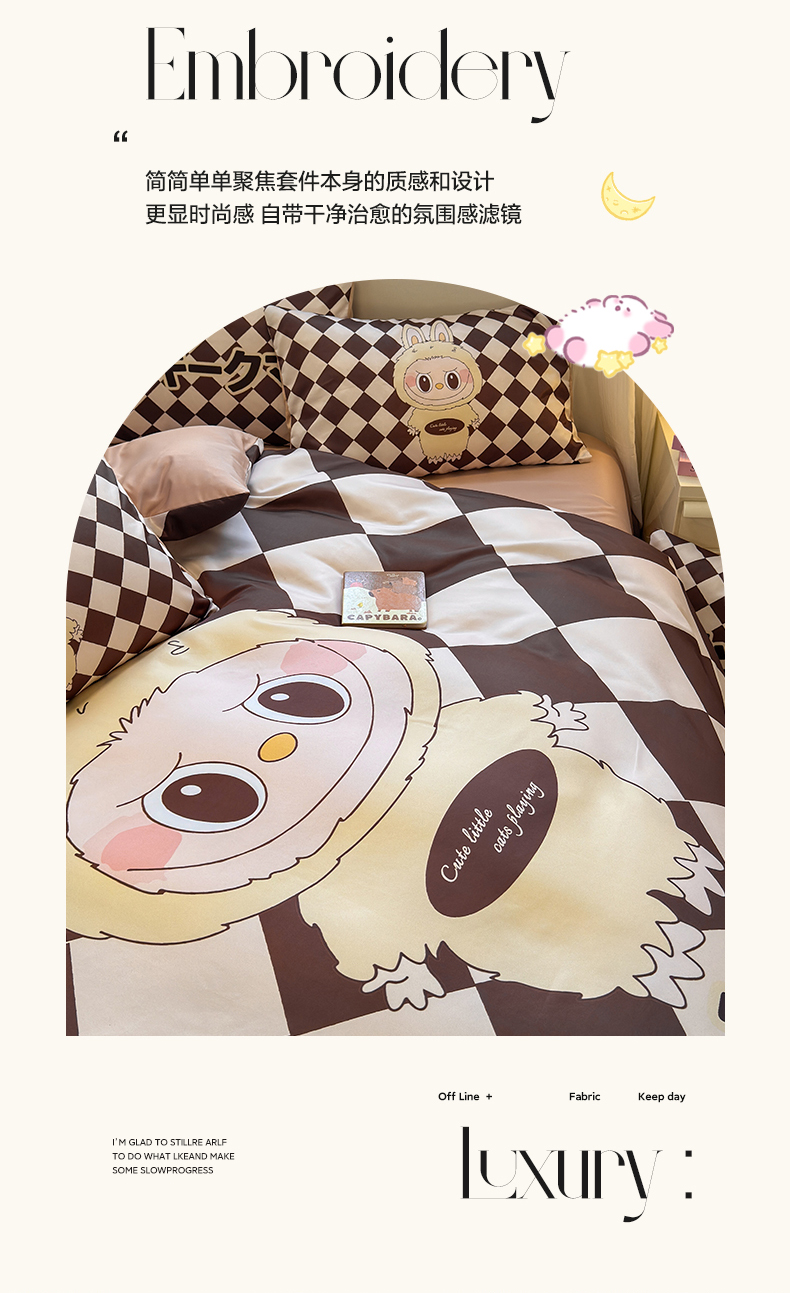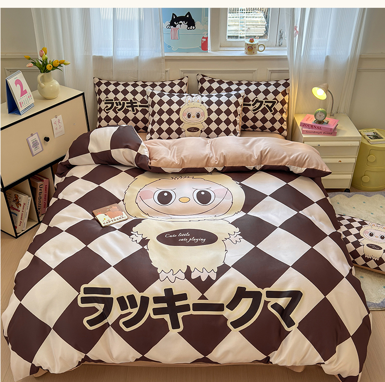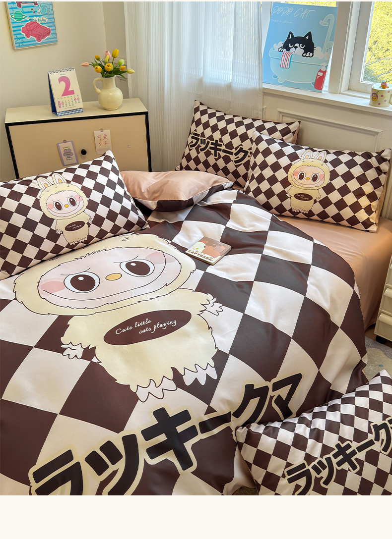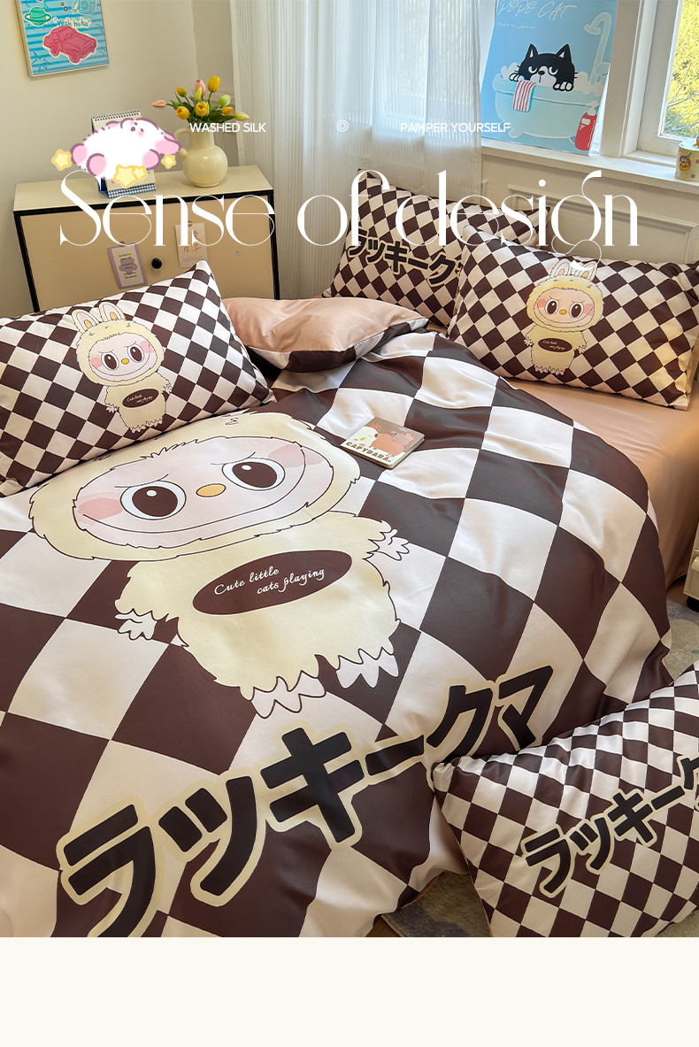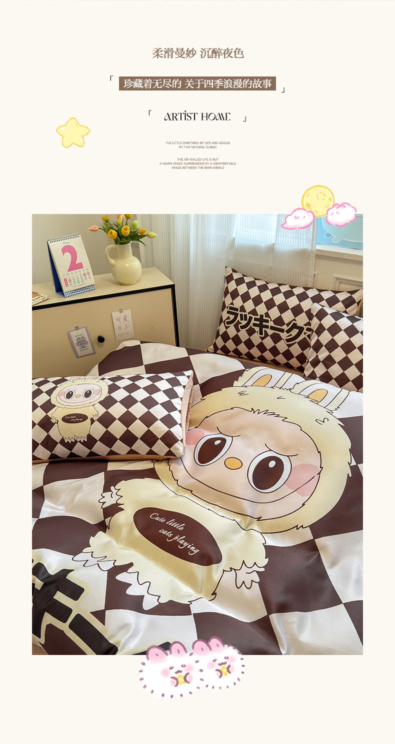 商品名称:摩卡(乐趣) 2025新款水洗真丝数码印花卡通兔系列四件套 菱形兔