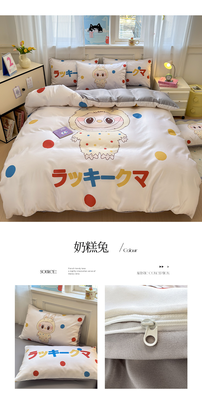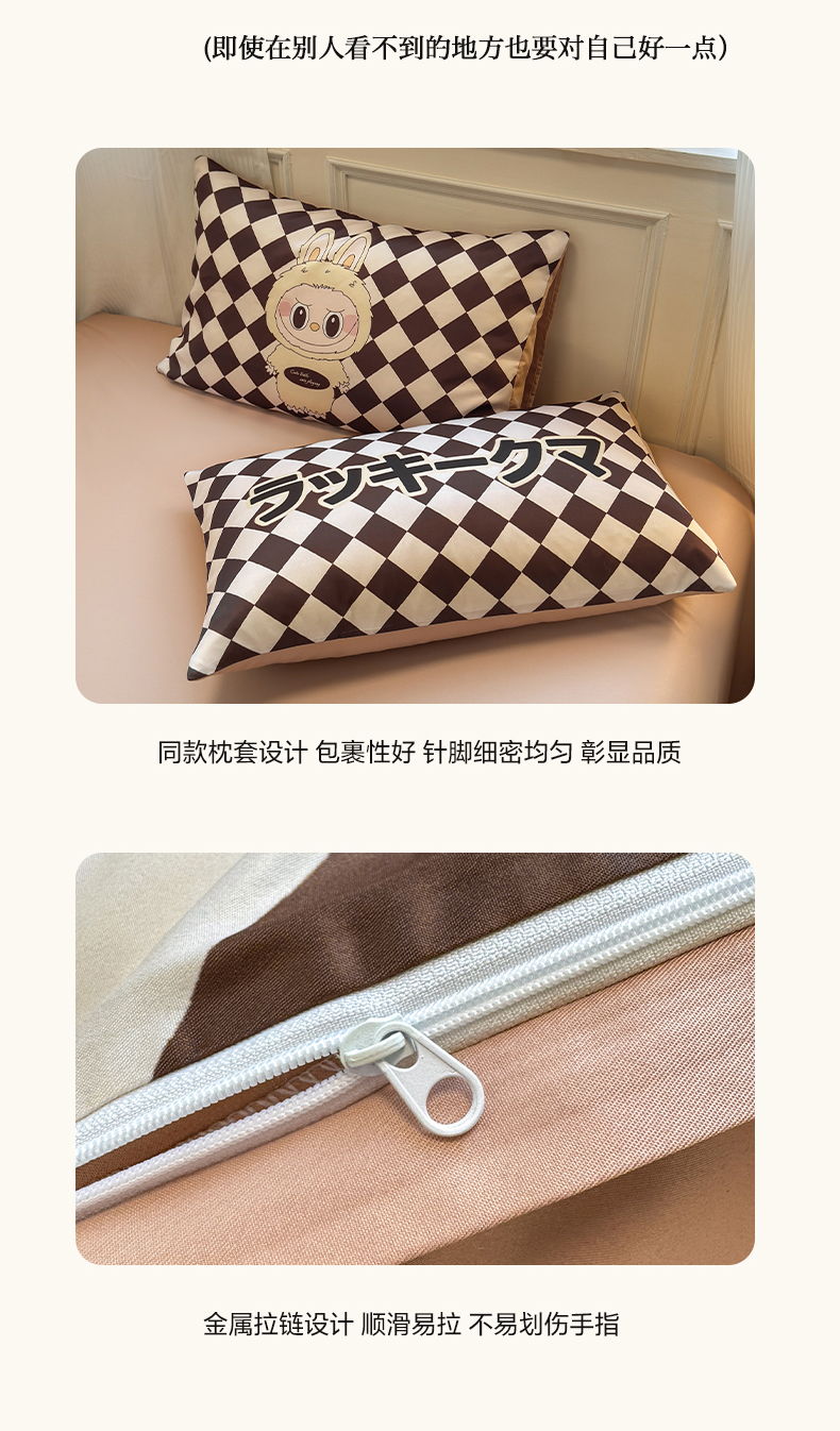 (总)摩卡(乐趣) 2025秋冬新品网红款水洗棉四季款四件套,豹纹熊-粉,豹纹熊-绿,彩虹兔,公仔蓝,梦幻粉,梦幻蓝,棋盘格公仔,太阳花粉,天使熊-粉,天使熊-咖,小熊头,熊头白,熊头橙,熊头咖,熊仔白