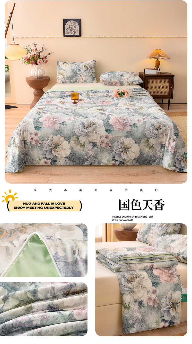 商品名称:曼尼 2025新款印花凉感丝夏被夏凉被 国色天香