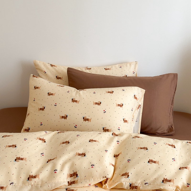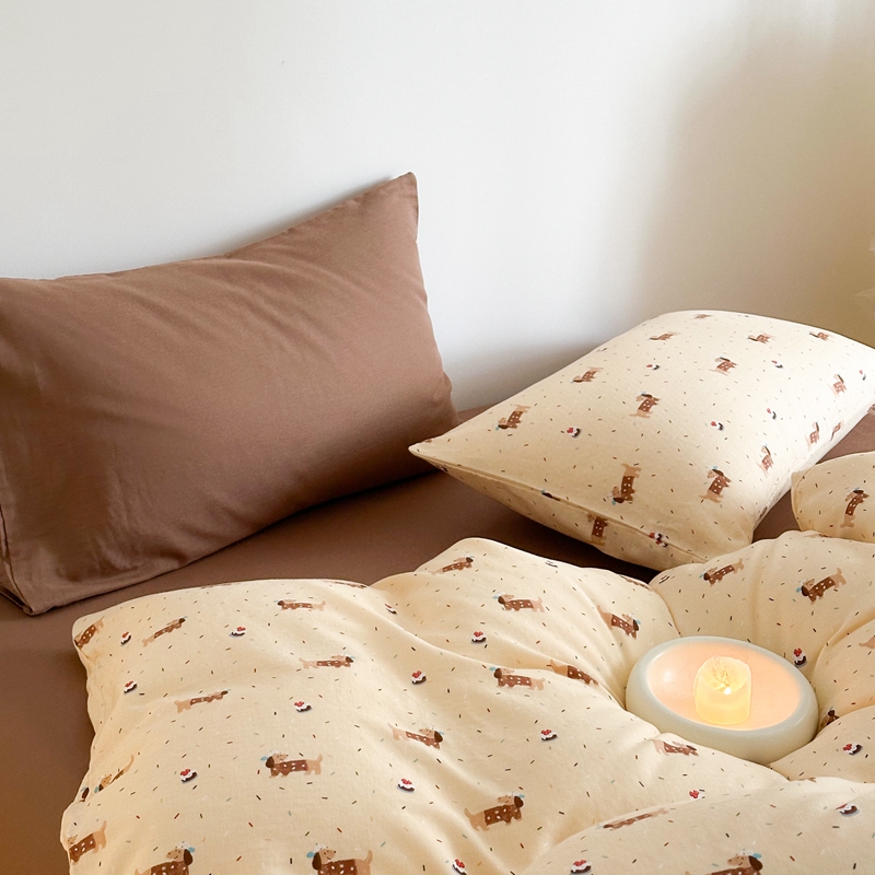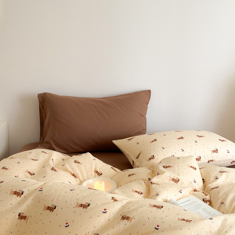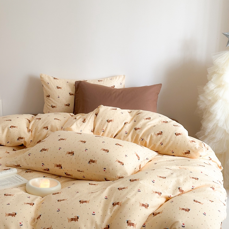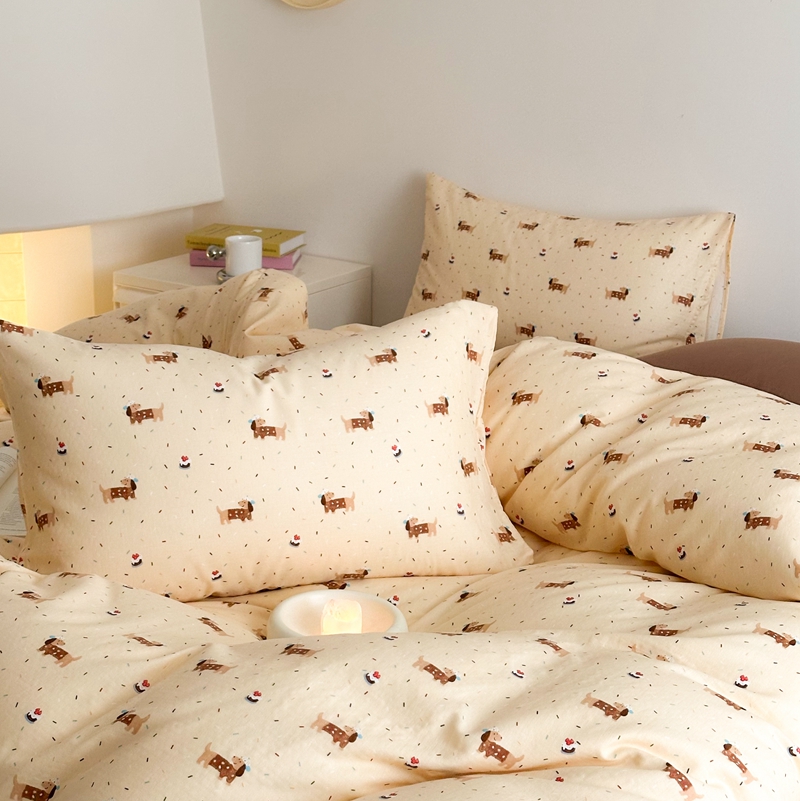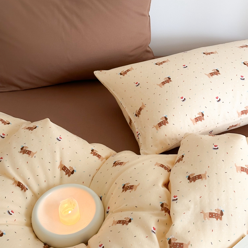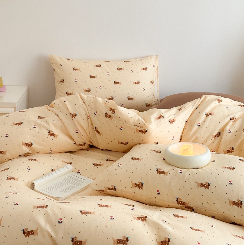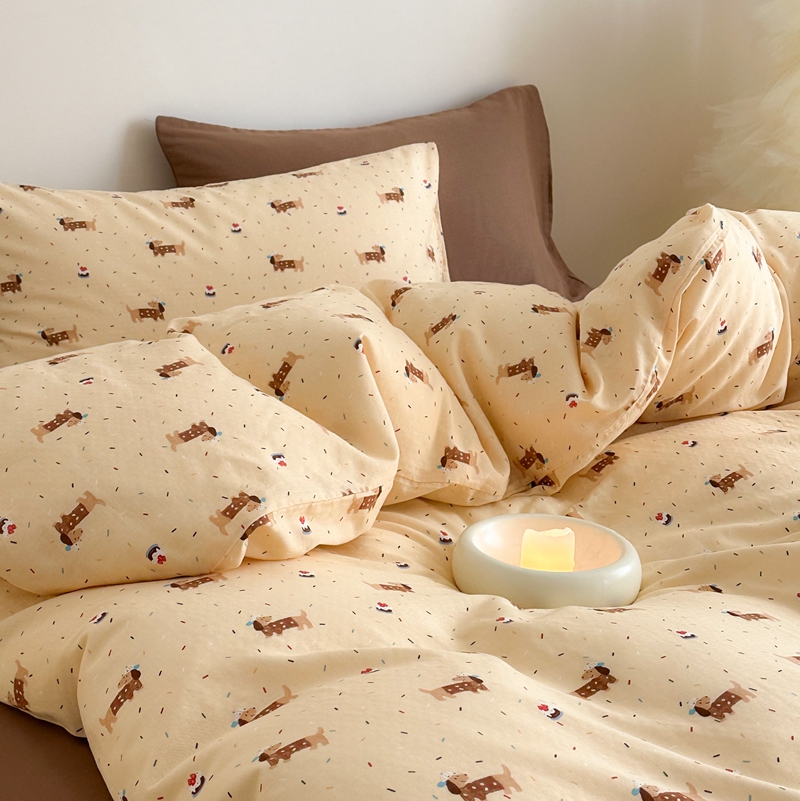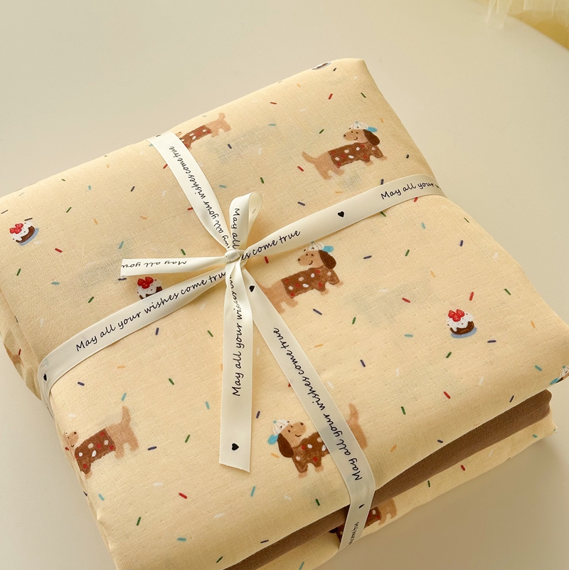 桃喜 2025新款春夏双层纱卡通系列四件套 蛋糕腊肠狗