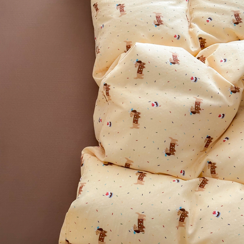 商品名称:桃喜 2025新款春夏双层纱卡通系列四件套 蛋糕腊肠狗