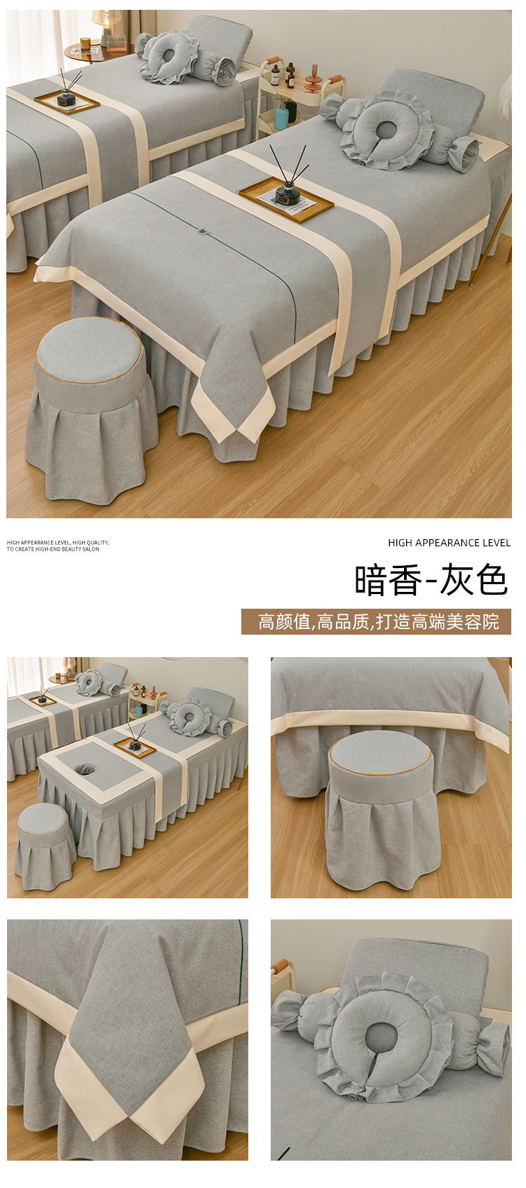 • 91家纺网 家纺一手货源 找家纺 芙怡 2025春夏新款8029款A棉麻B全棉美容床罩四件套-暗香系列 暗香-灰色