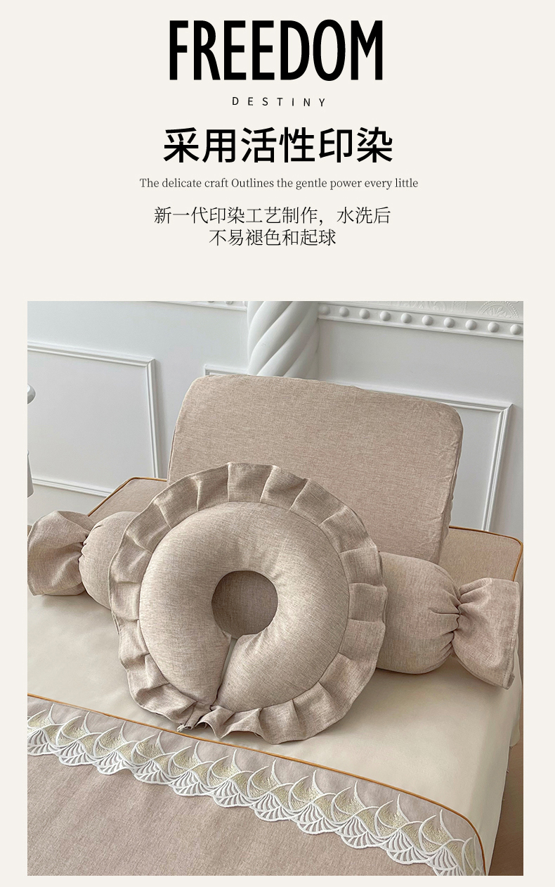 芙怡 2025春夏新款8031款棉麻美容床罩四件套-未央系列 未央-浅驼