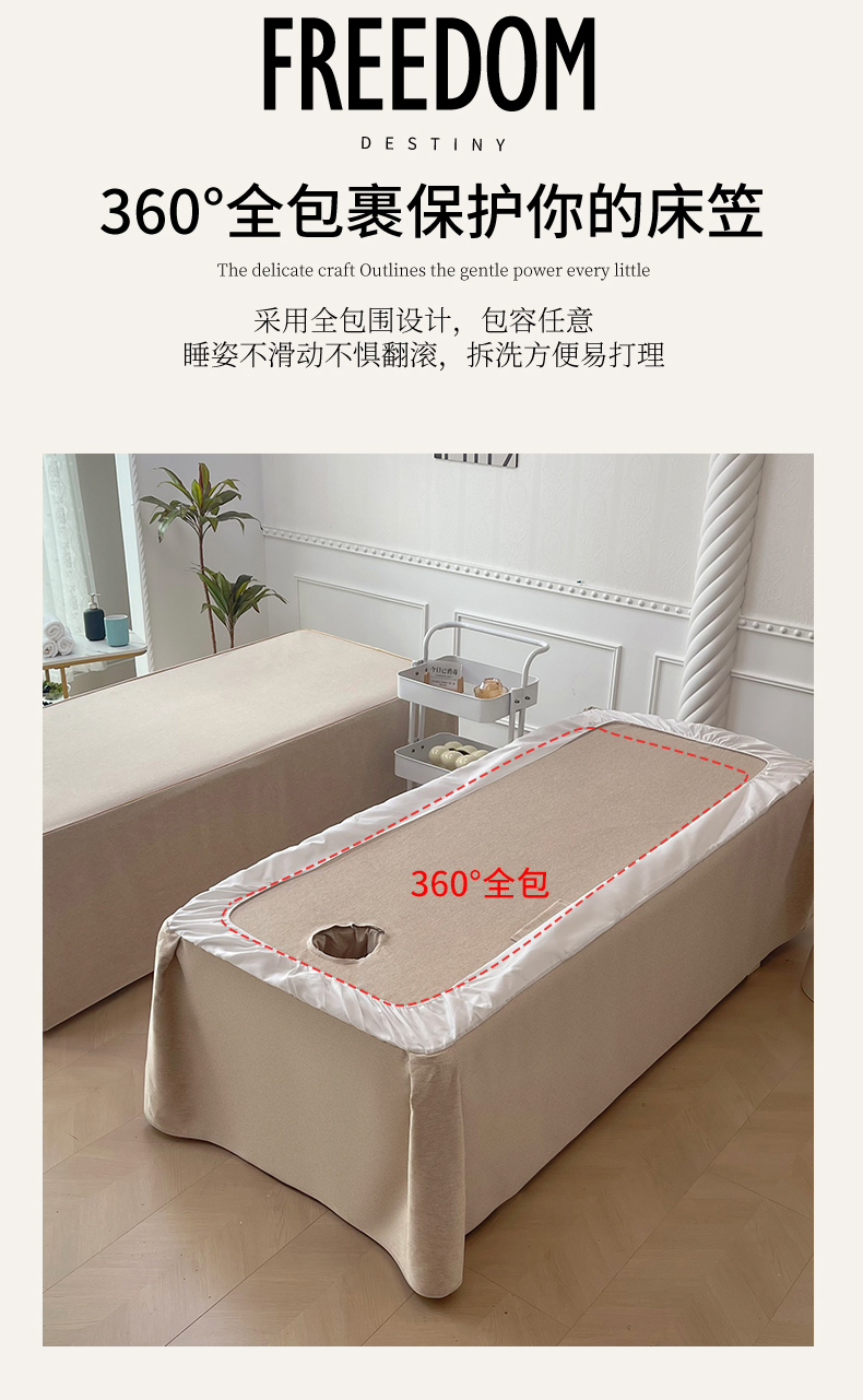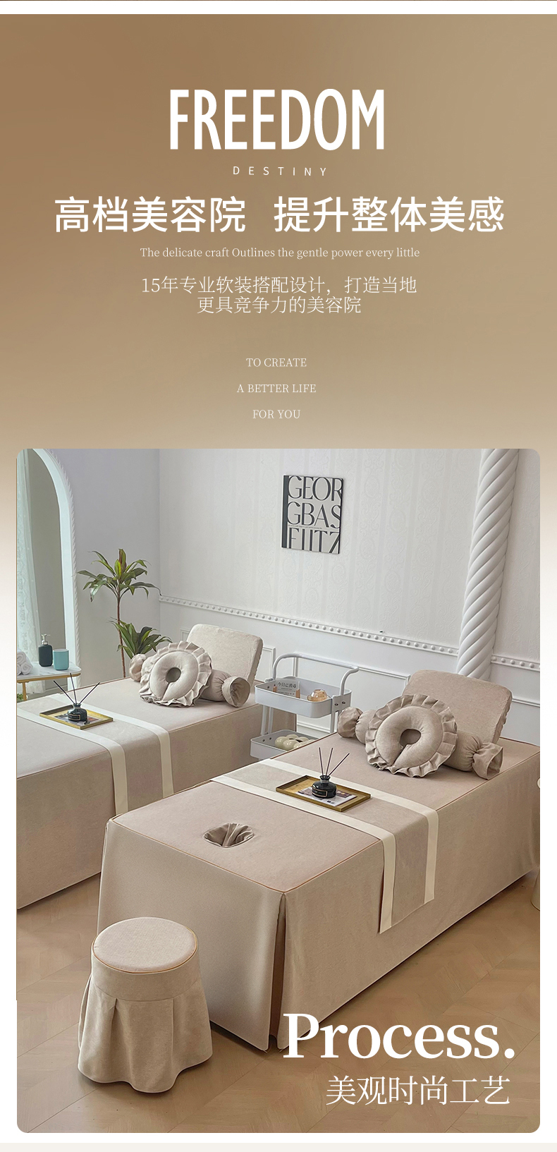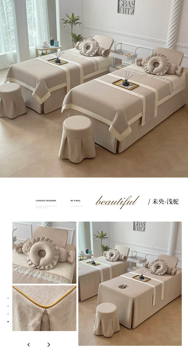 (总)芙怡 2025春夏新款8031款棉麻美容床罩四件套-未央系列,未央-蝶翅蓝,未央-格调 灰,未央-蜜桃 粉,未央-浅咖,未央-浅驼,未央-斑斓绿