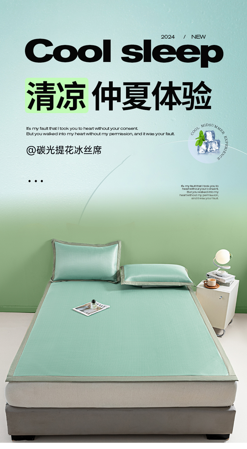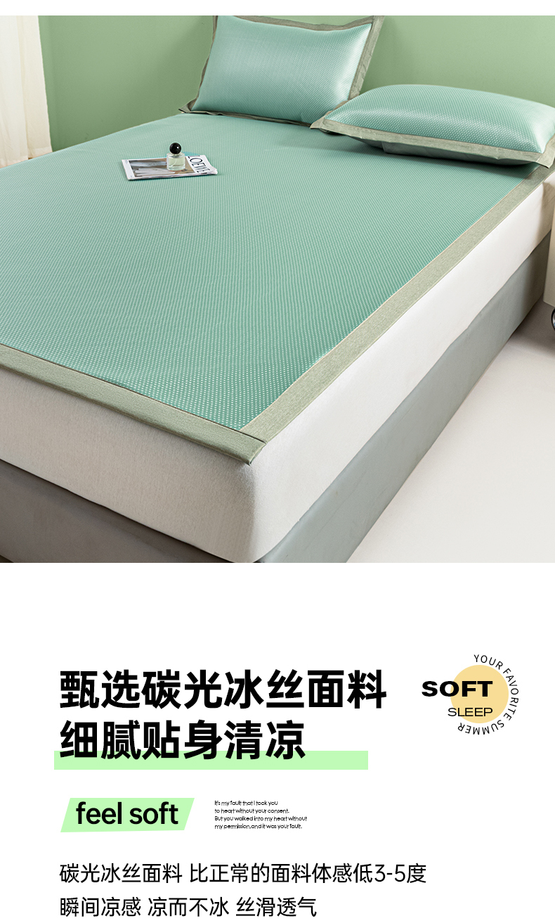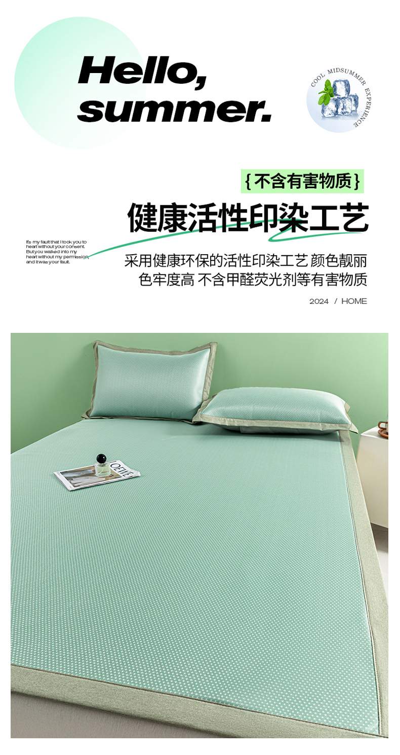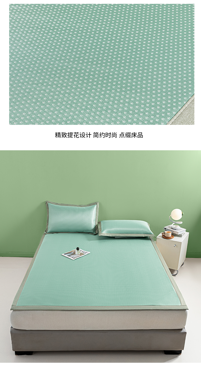 商品名称:阿亮家居 2025新款凉席碳光席冰丝席三件套 漫天星-绿色