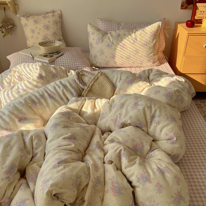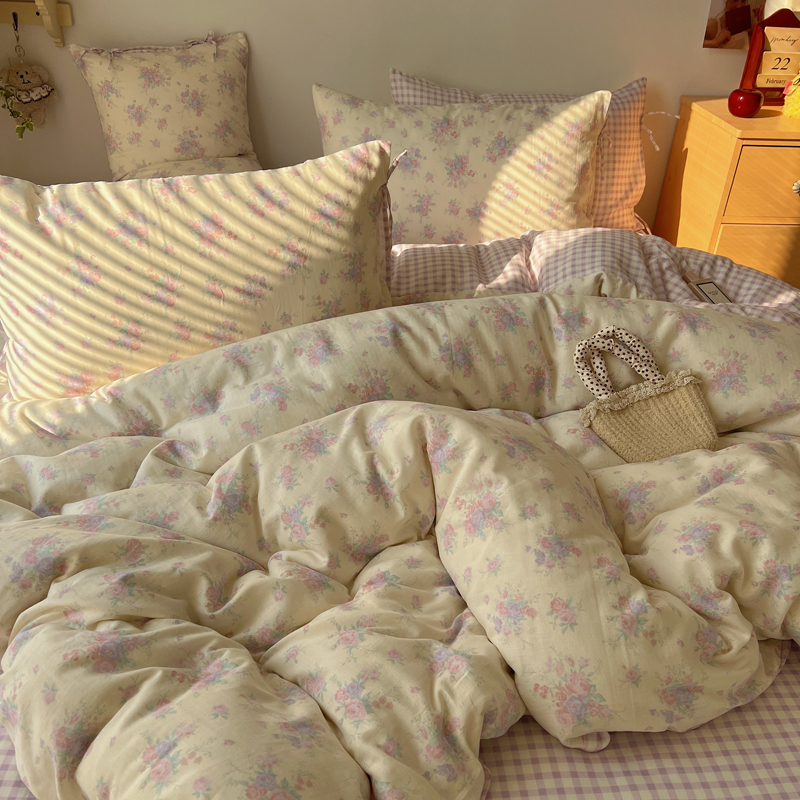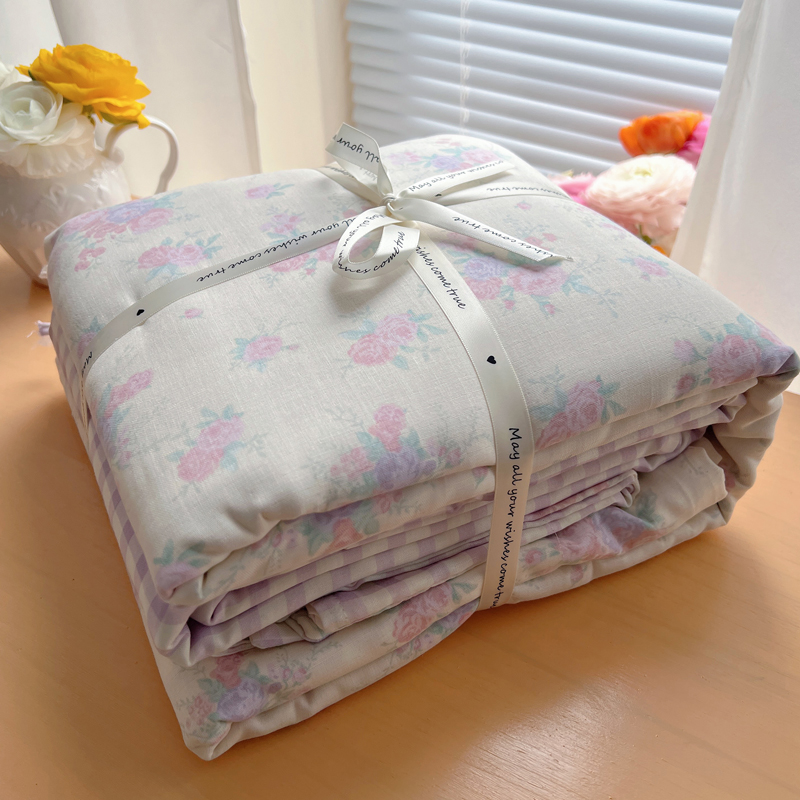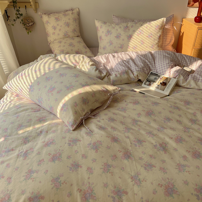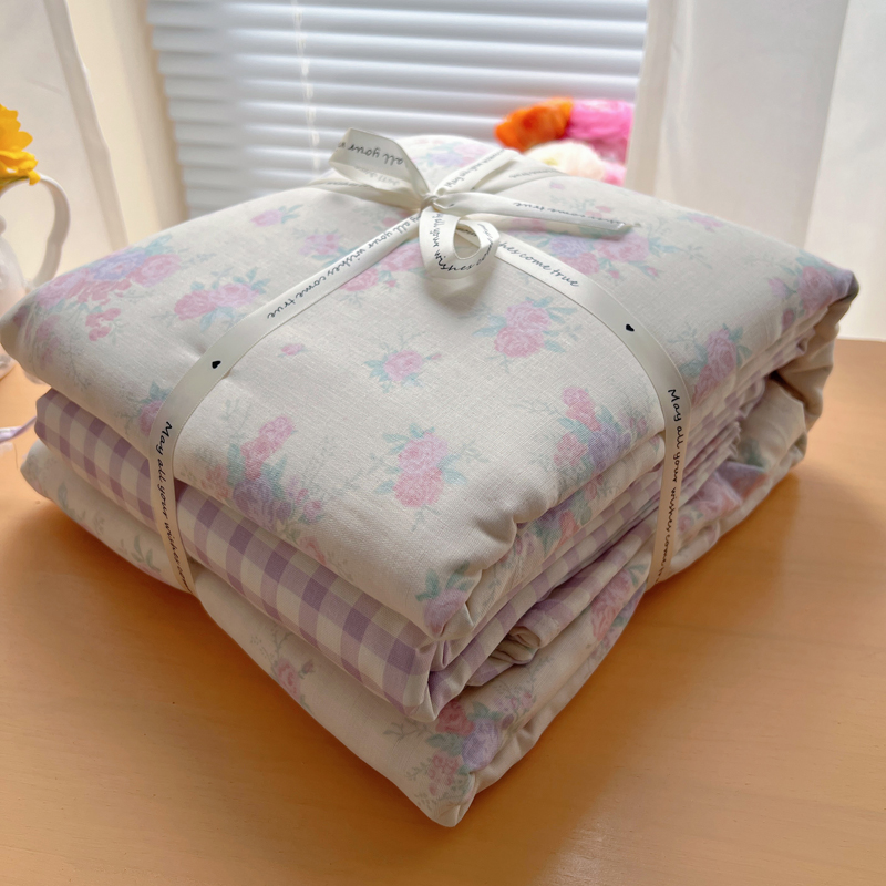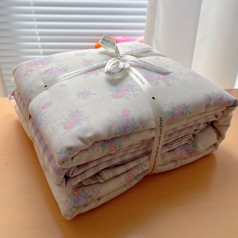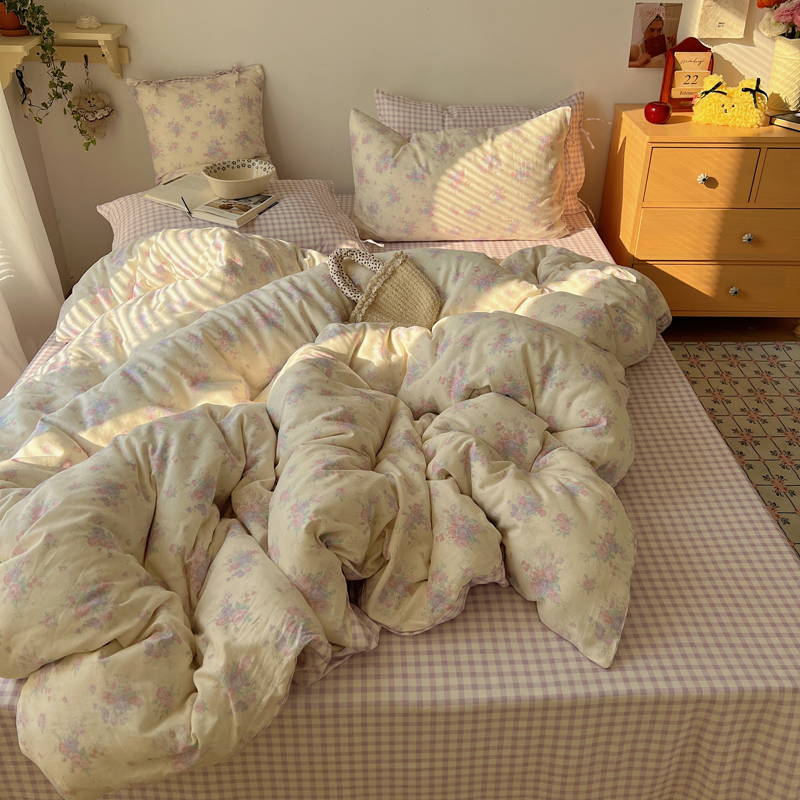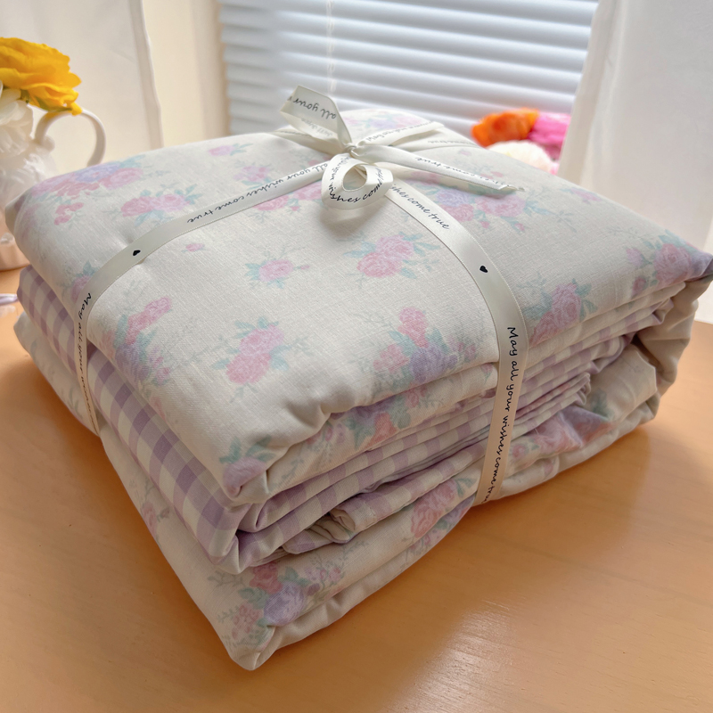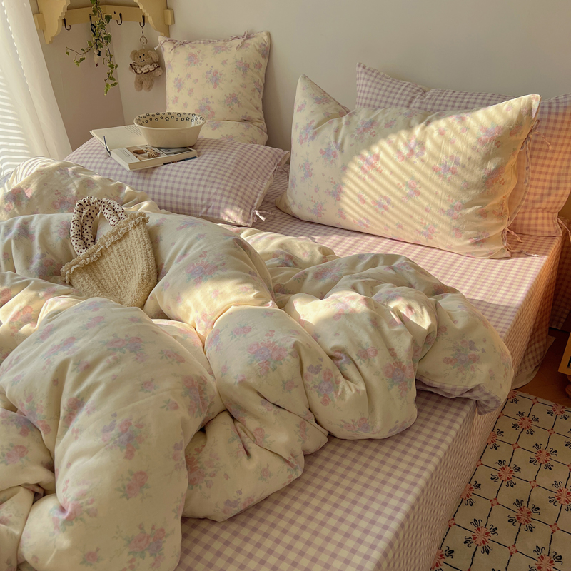 商品名称:桃喜 2025双层纱碎花格子蝴蝶结系列四件套 安和桥紫格