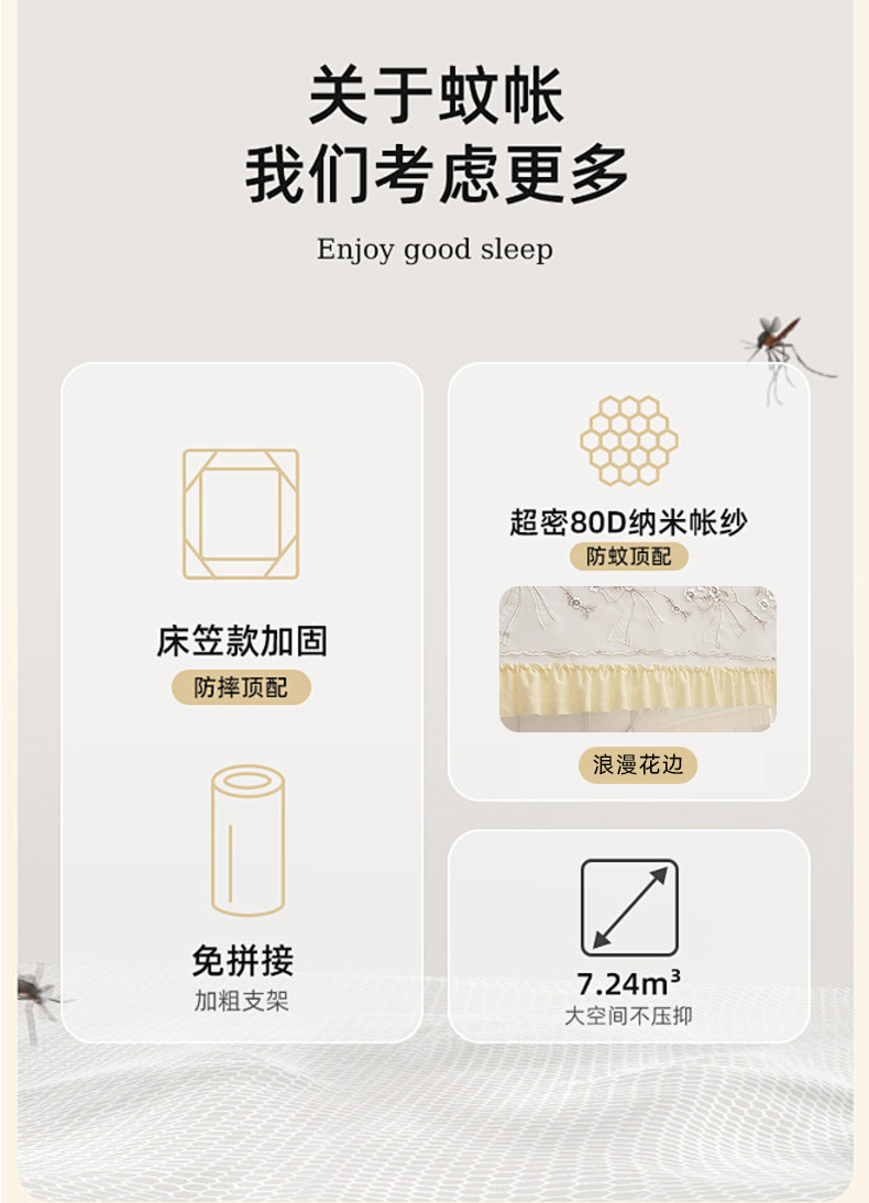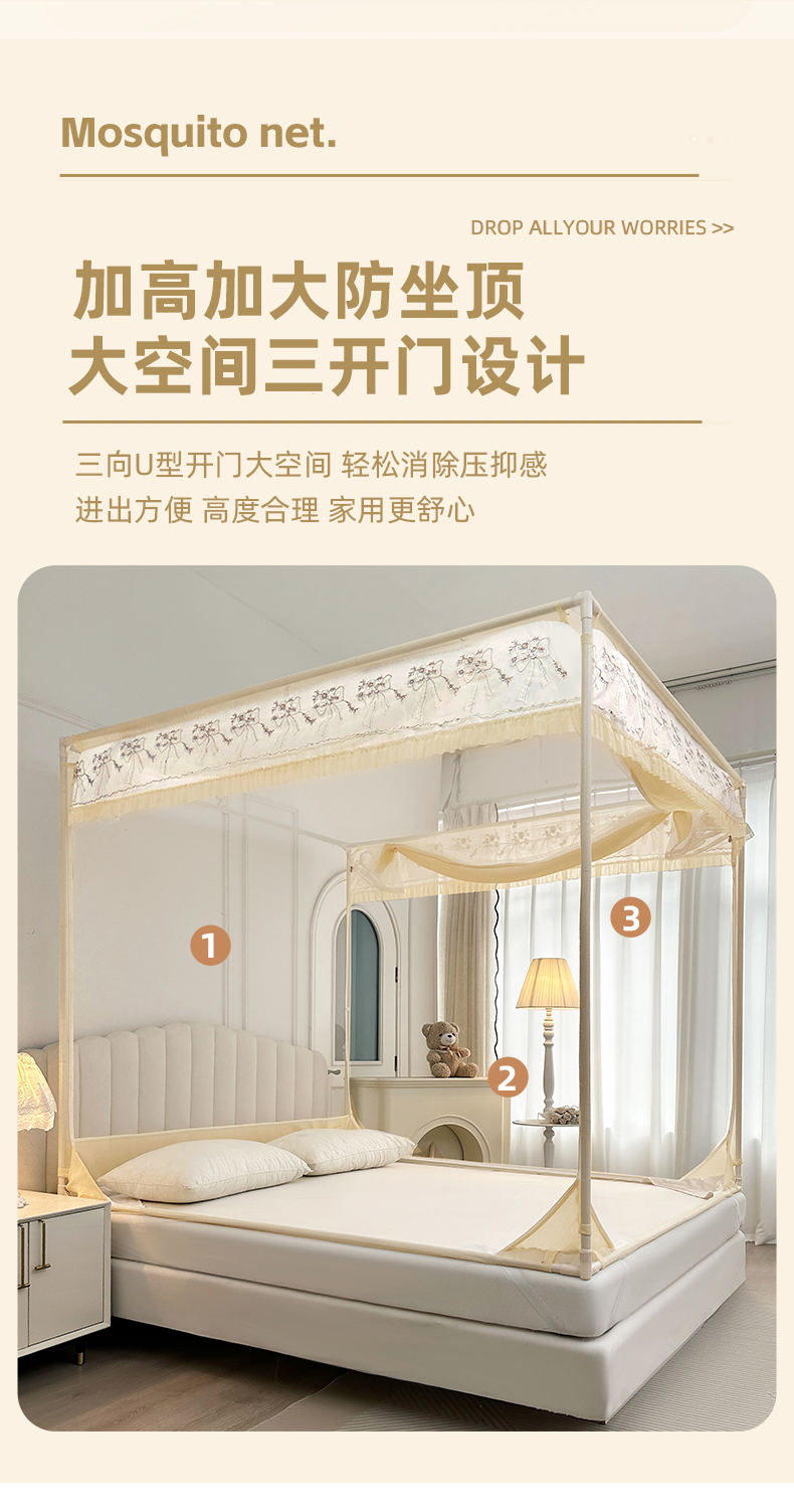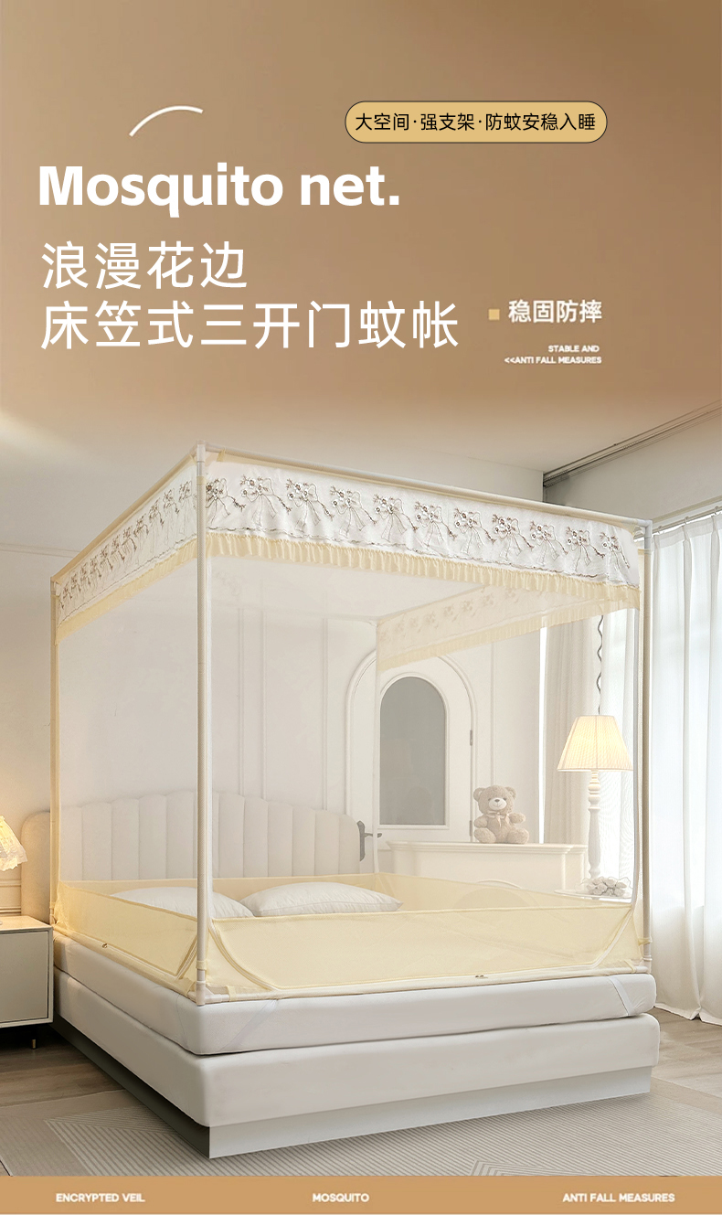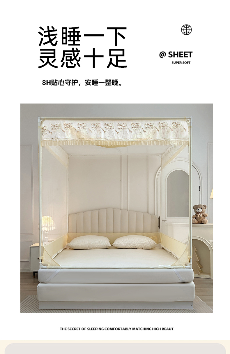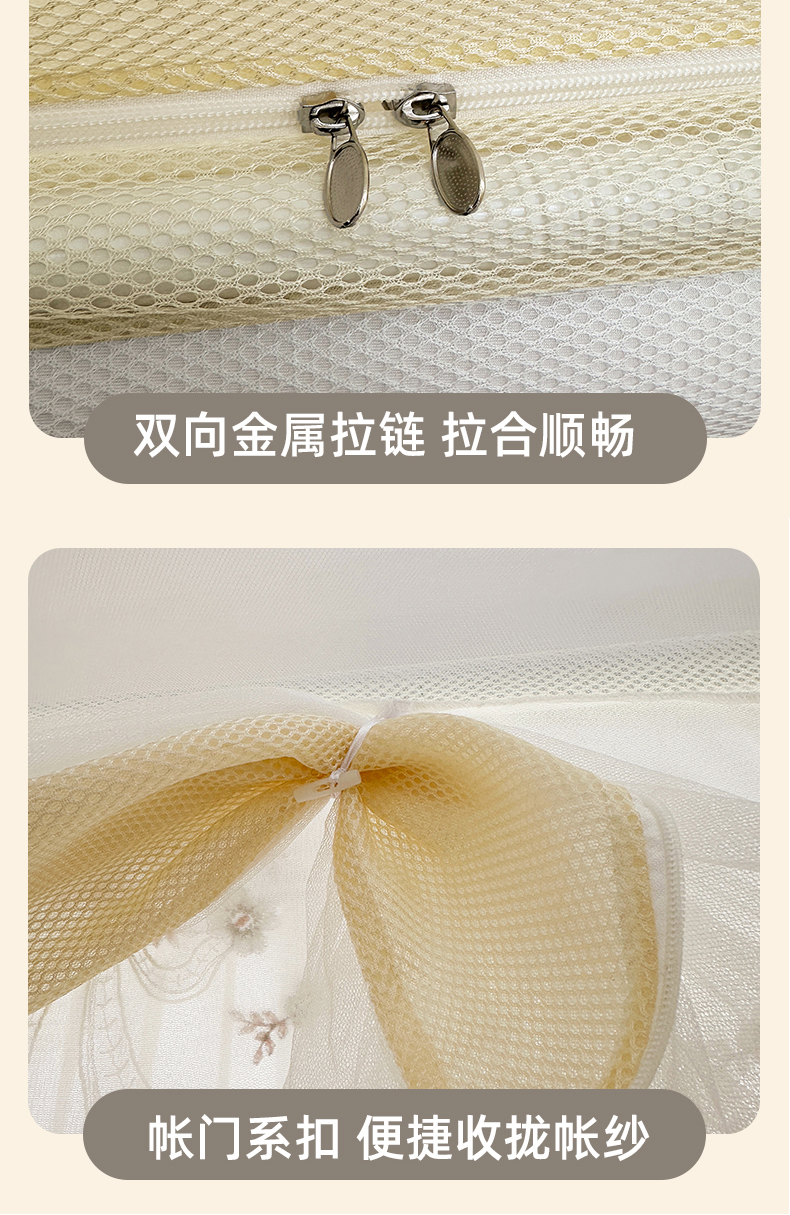 当前位置: 91家纺网 > 商品网购 > 床上用品 > 蚊帐 > 吊顶蚊帐 > 2025新款双层花边全包围床笠款三开门蚊帐-幽梦星辰 奶黄