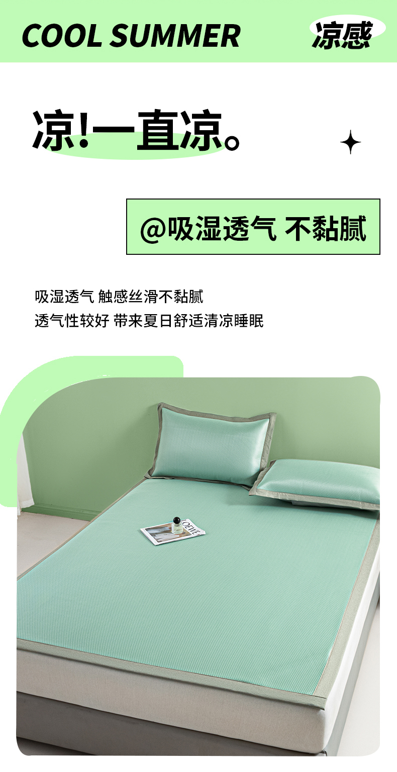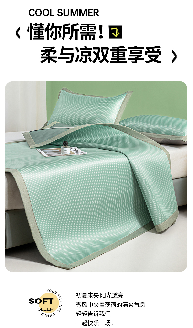 商品名称:阿亮家居 2025新款凉席碳光席冰丝席三件套 漫天星-绿色