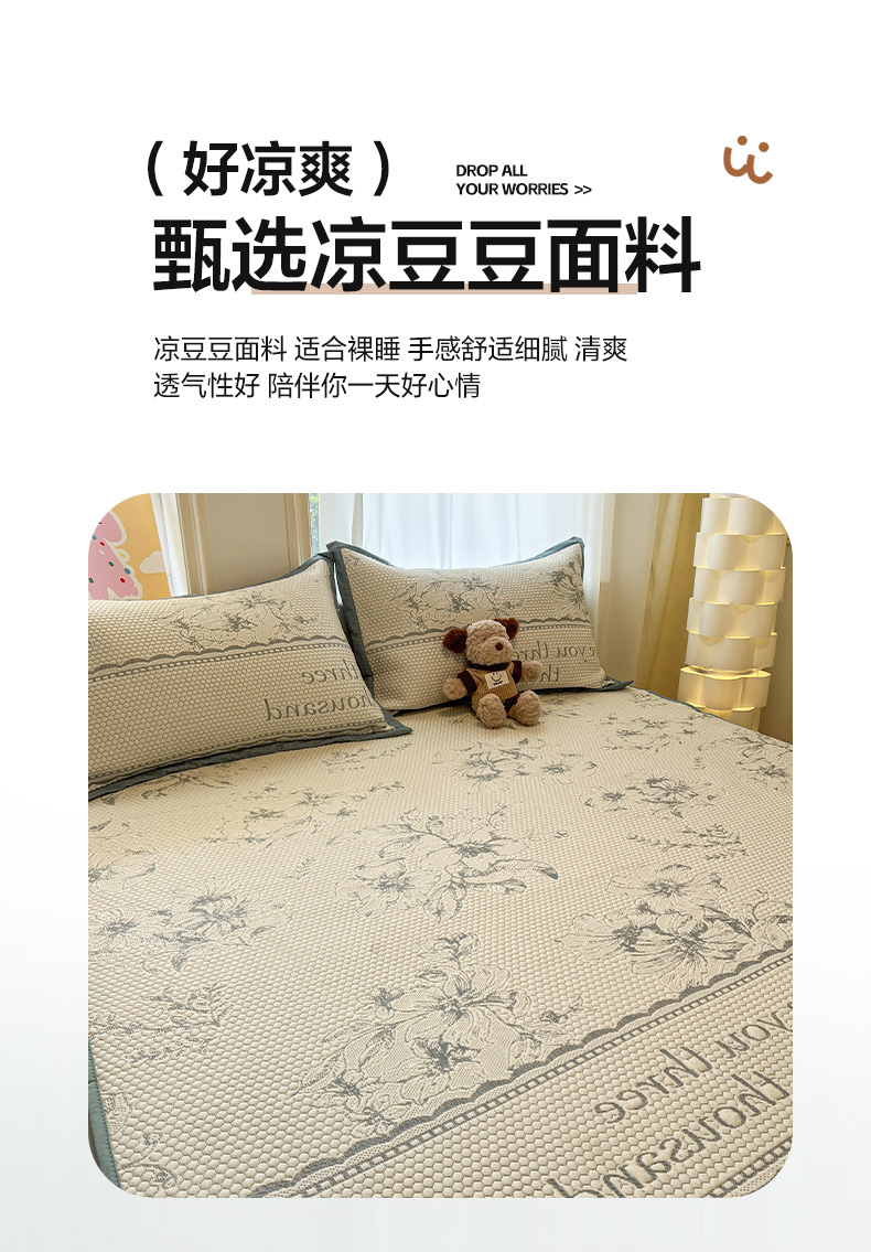 雅居纺家纺 2025春夏新款A类加厚三明治底提花凉感席床笠款 悠闲花园